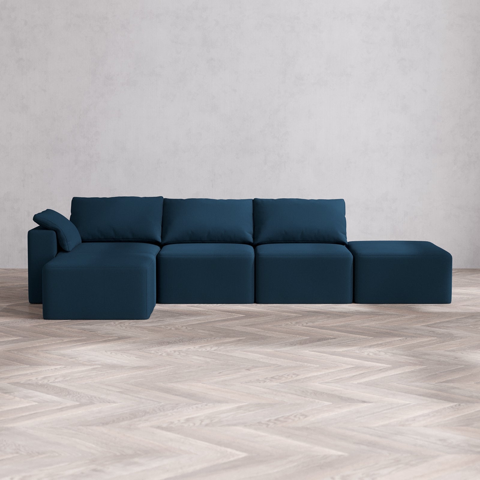 Modular Washable 3-Seater Open End Sectional Cloud Sofa | Left-Facing Arm | Arden Weave in Lazuli