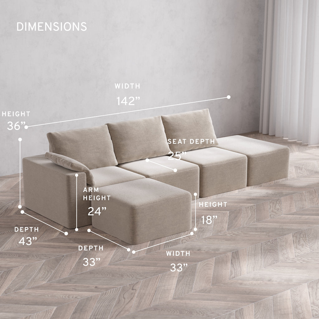 Designed with true flexibility in mind, our modular system adapts to your space and your lifestyle. Whether you're expanding, downsizing, or simply reimagining your layout, each piece connects effortlessly to create a configuration that works for you—today, and as life changes.