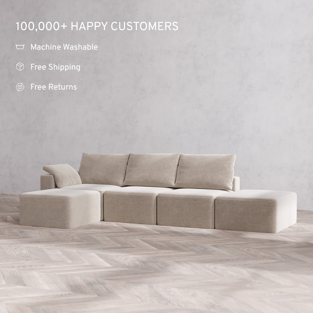 Machine Washable: Every piece of fabric—including the internal quilted duvet—is fully removable and machine washable. It’s the only Cloud-style sofa you can truly deep clean, effortlessly.
