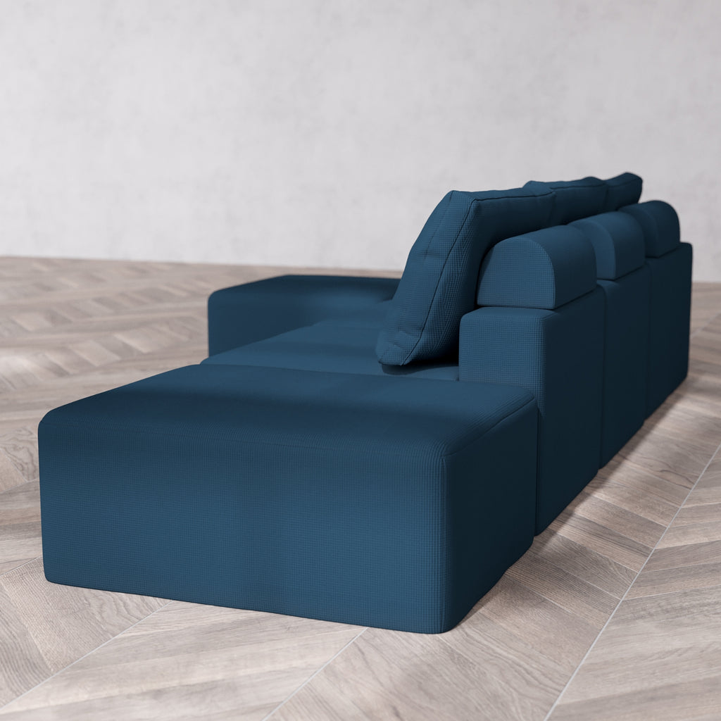 Modular Washable 3-Seater Open End Sectional Cloud + Bolster Sofa | Left-Facing Arm | Arden Weave in Lazuli