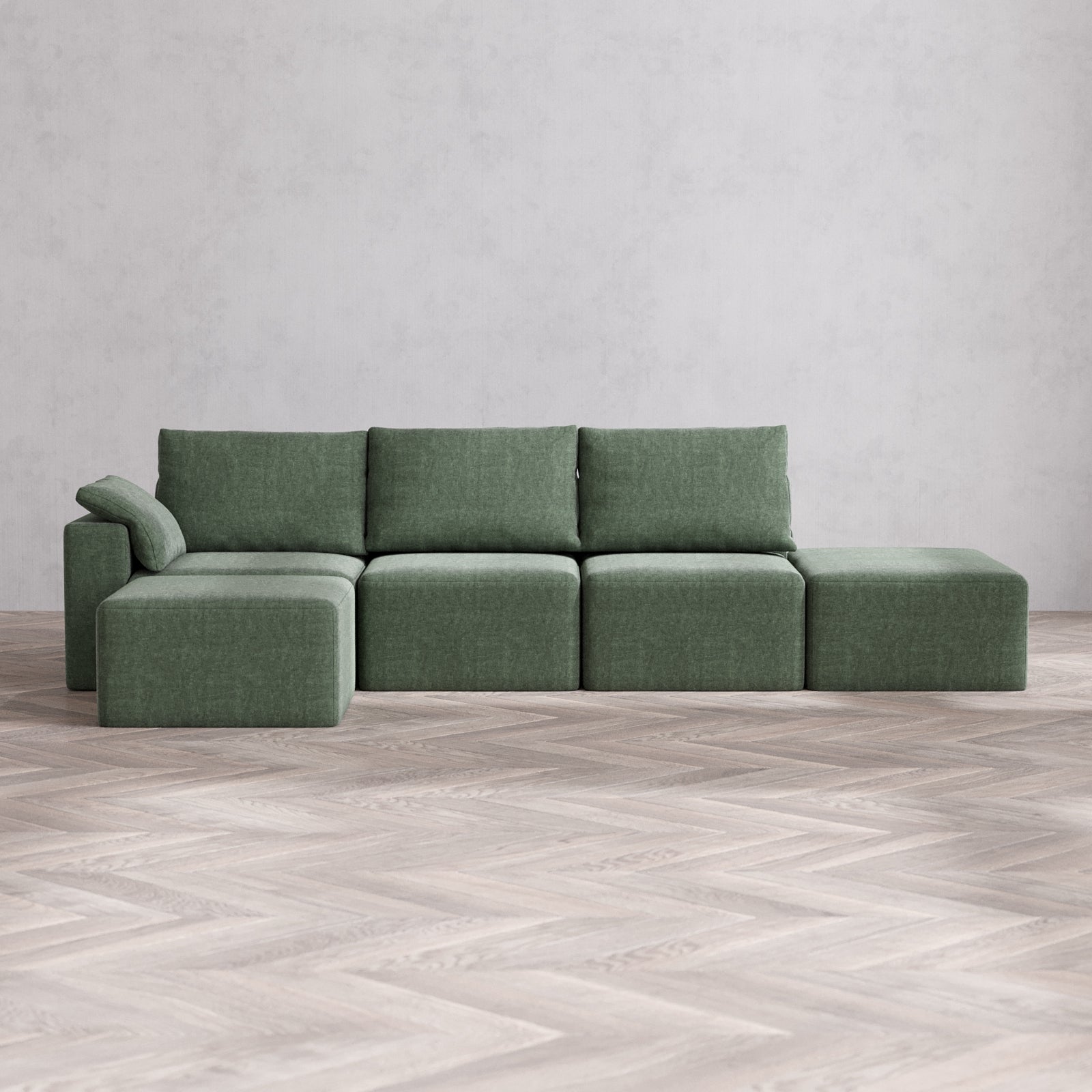Modular Washable 3-Seater Open End Sectional Cloud + Bolster Sofa | Left-Facing Arm | Heirloom Velvet in Sage