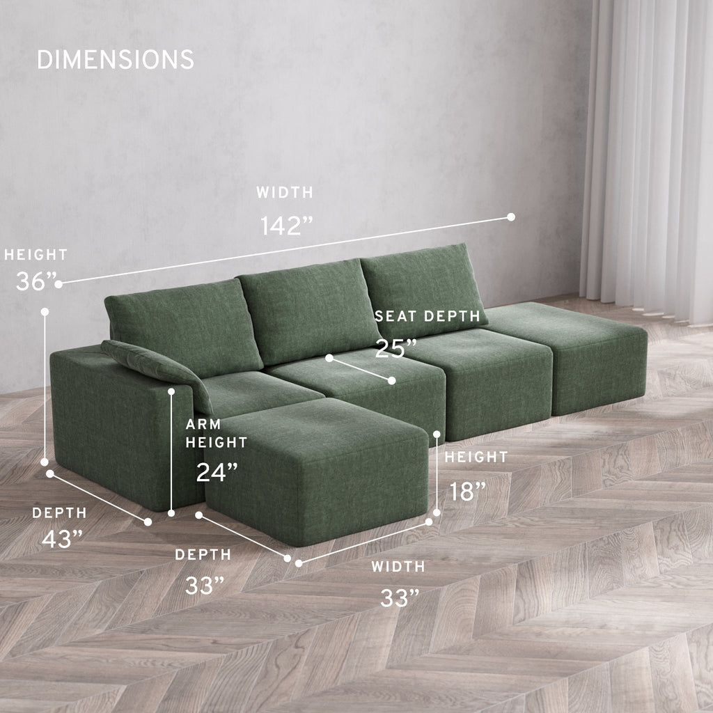 Designed with true flexibility in mind, our modular system adapts to your space and your lifestyle. Whether you're expanding, downsizing, or simply reimagining your layout, each piece connects effortlessly to create a configuration that works for you—today, and as life changes.