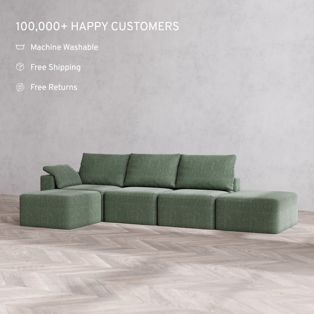 Machine Washable: Every piece of fabric—including the internal quilted duvet—is fully removable and machine washable. It’s the only Cloud-style sofa you can truly deep clean, effortlessly.