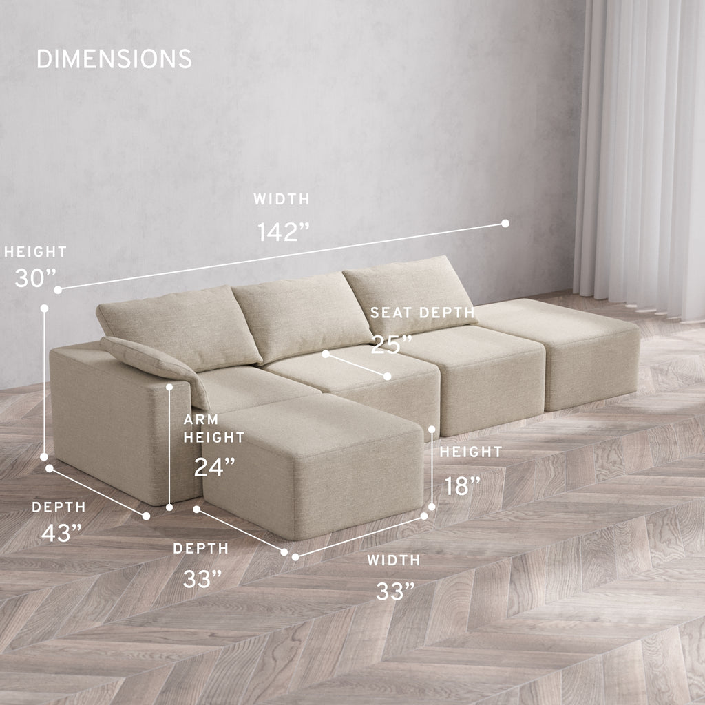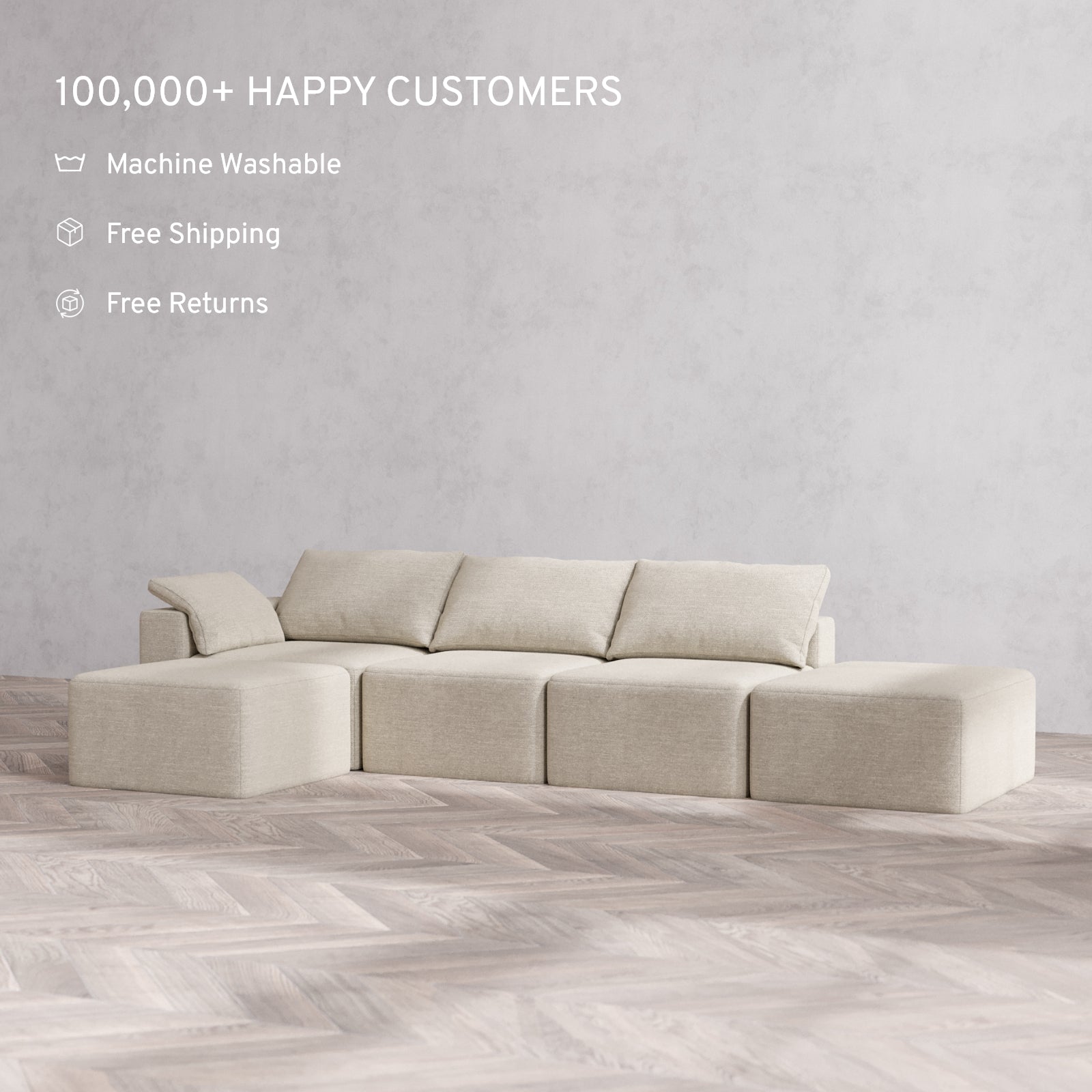 Modular Washable 3-Seater Open End Sectional Cloud Sofa | Left-Facing Arm | Plush Twill in Sandstone