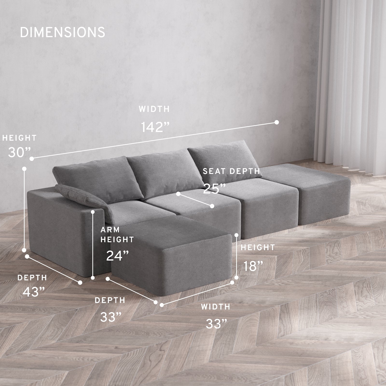 Modular Washable 3-Seater Open End Sectional Cloud Sofa | Left-Facing Arm | Lux Weave in Slate