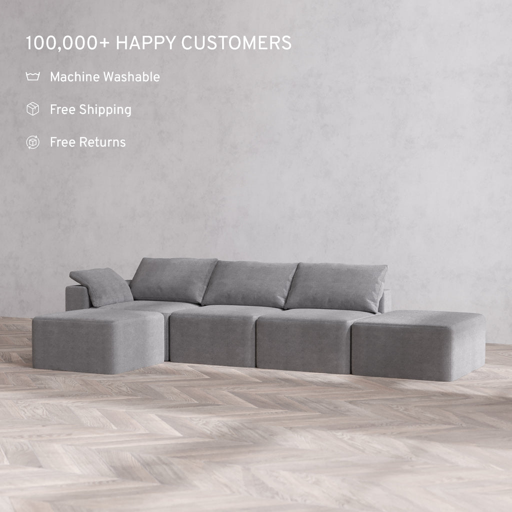 The Only Washable Cloud Sofa: With a waterproof frame and fabrics that resist pets, stains, and spills, this sofa is made to handle everyday messes. Our patent-pending covers are machine washable and fully interchangeable—buy extra sets to change up your look anytime.