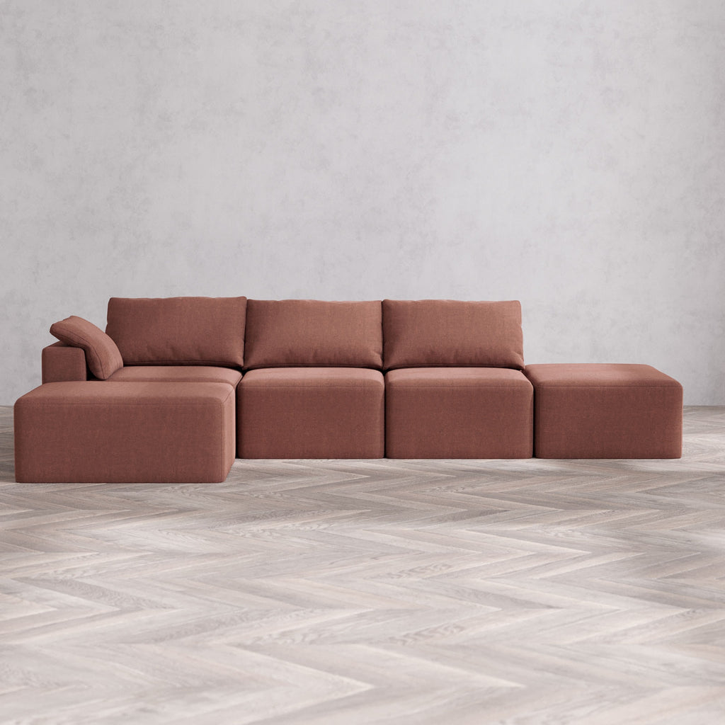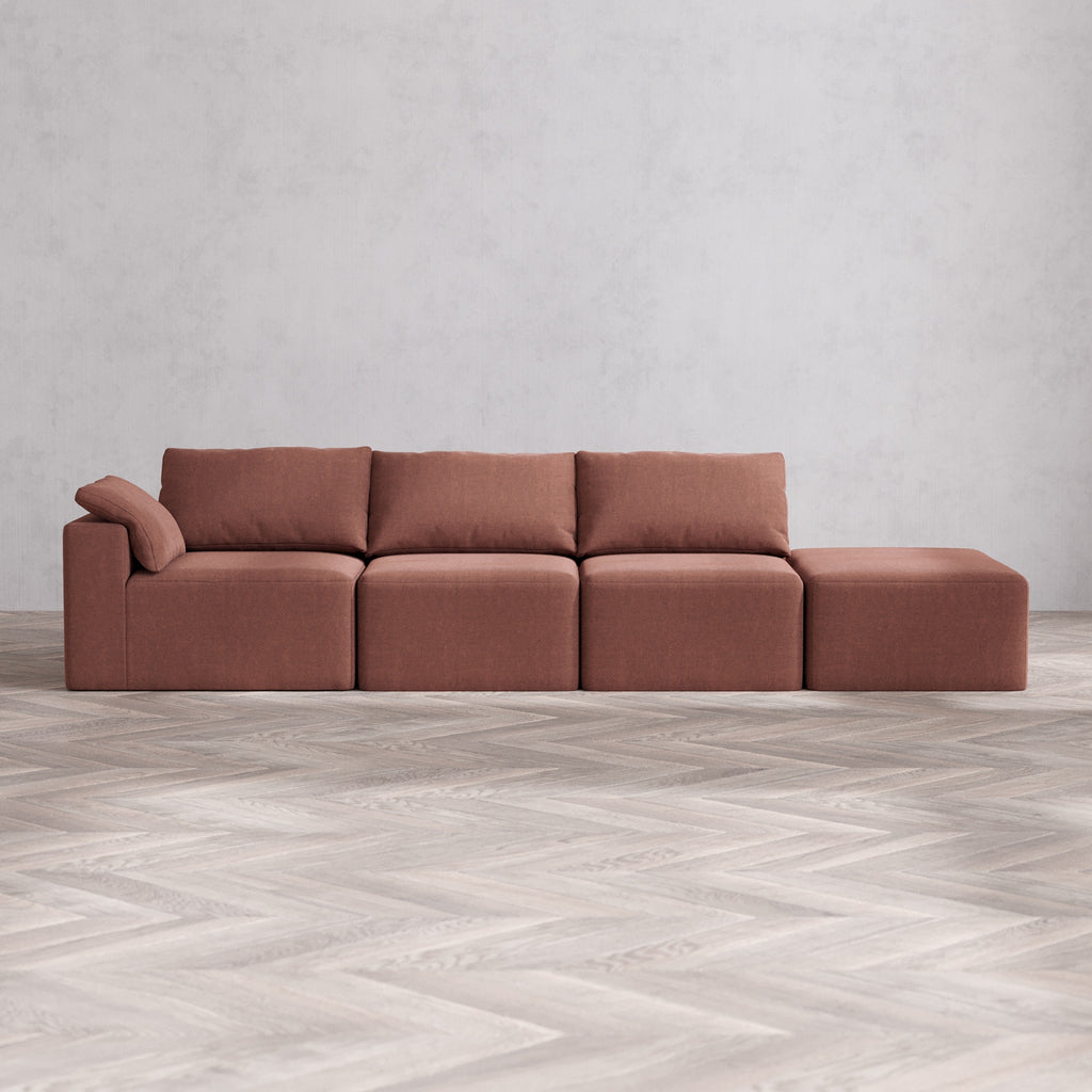 Modular Washable 3-Seater Open End Sectional Cloud Sofa | Left-Facing Arm | Heirloom Velvet in Sumac