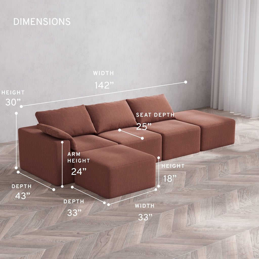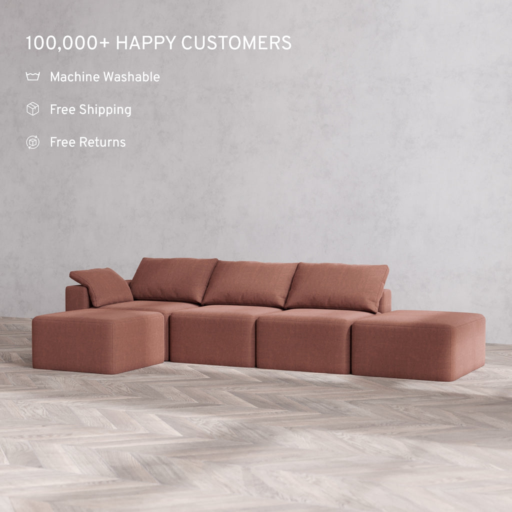 Machine Washable: Every piece of fabric—including the internal quilted duvet—is fully removable and machine washable. It’s the only Cloud-style sofa you can truly deep clean, effortlessly.