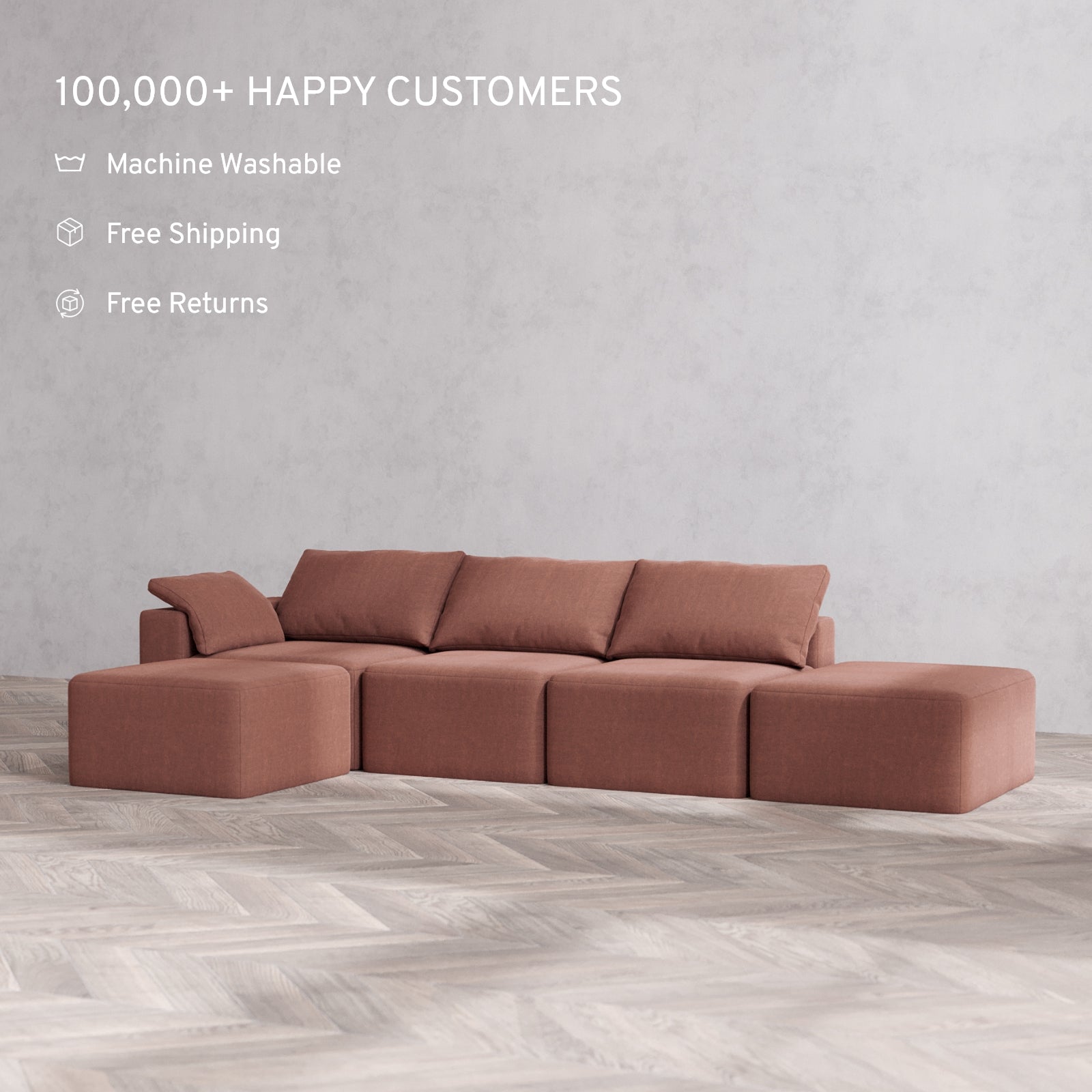 Modular: Flexible by design, each unit can be rearranged in seconds. Our patent-pending sofas are built to fit effortlessly into spaces of any size.