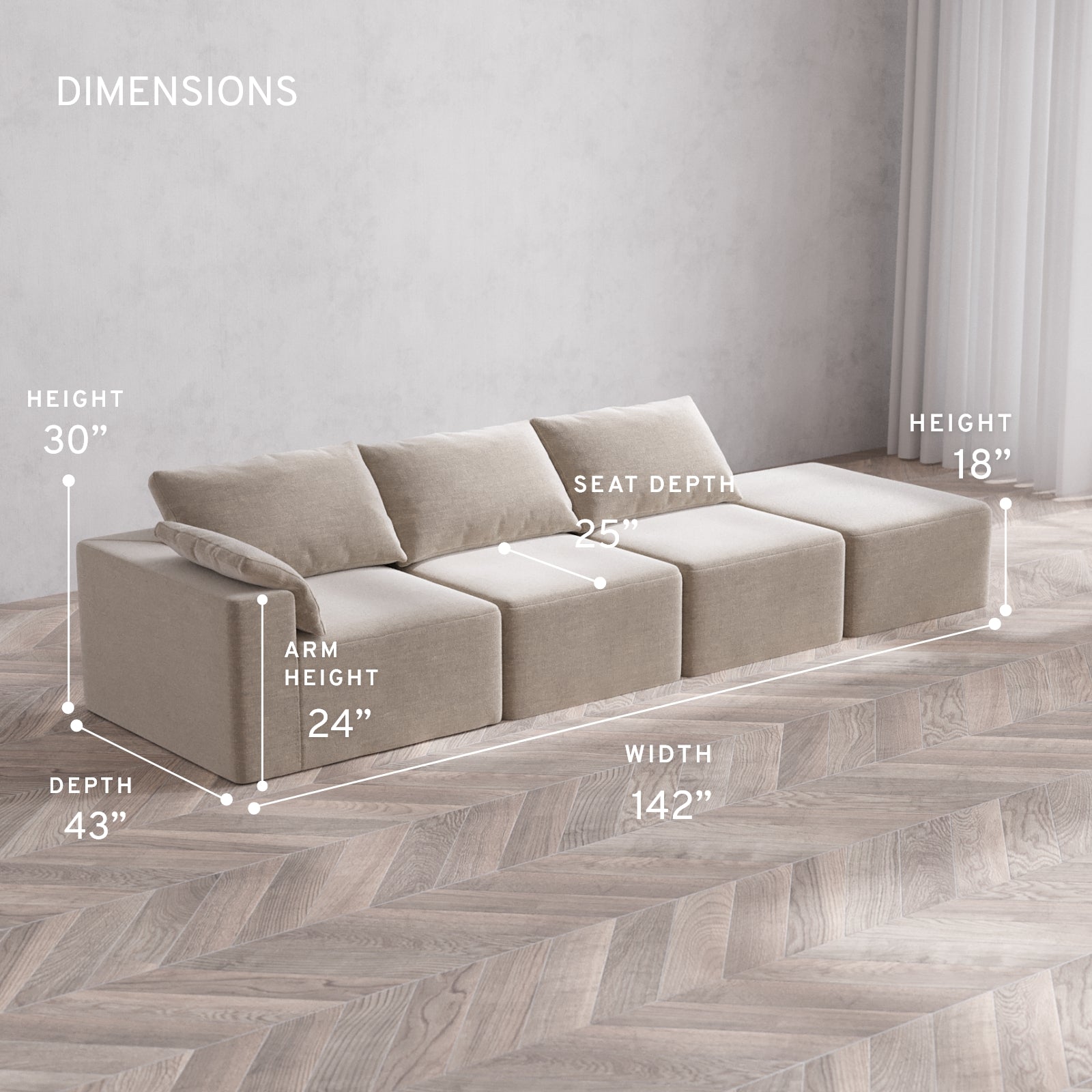 Please note, the natural characteristics of foam may compound the total dimensions by 1/2” to 1” per module.