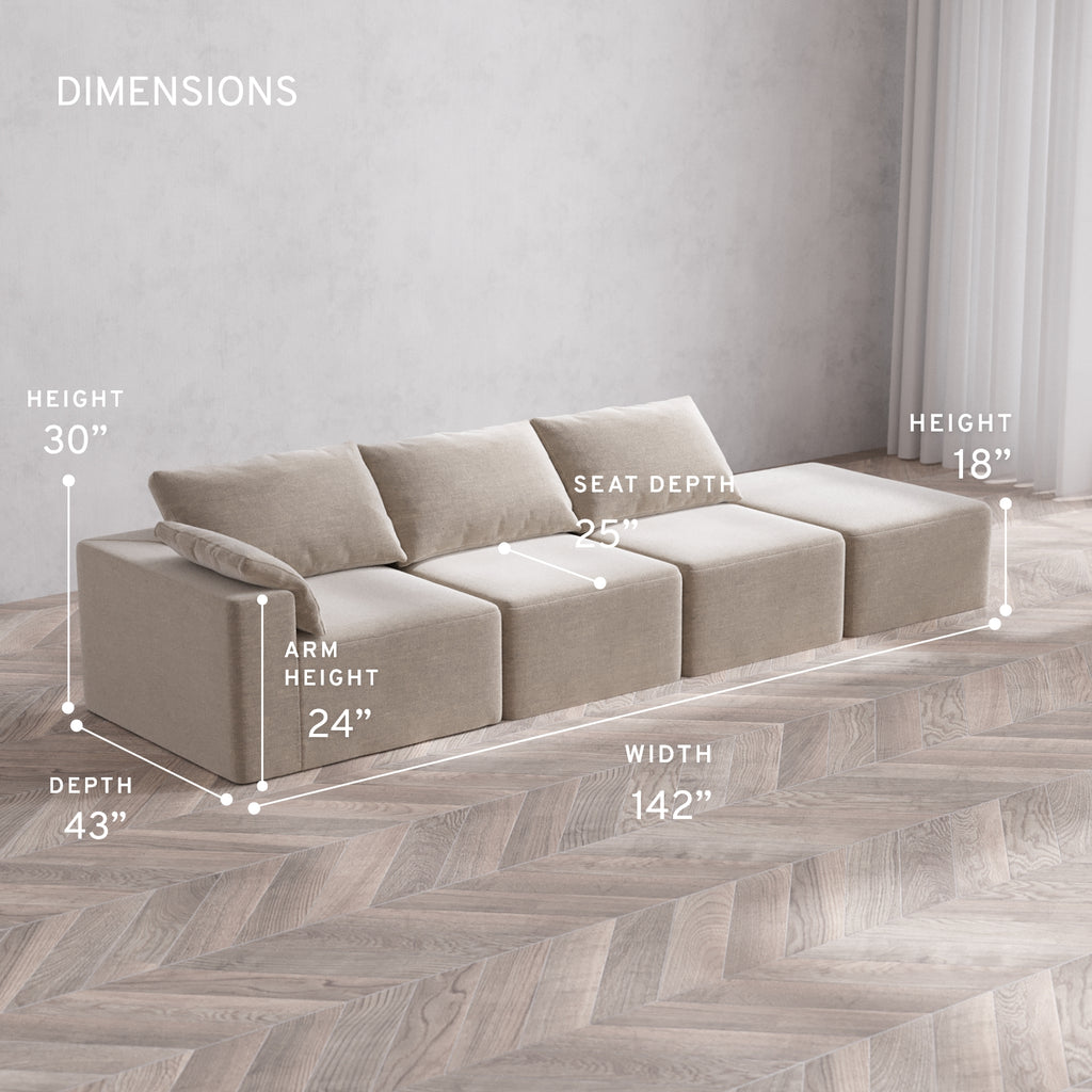 Machine Washable: Every piece of fabric—including the internal quilted duvet—is fully removable and machine washable. It’s the only Cloud-style sofa you can truly deep clean, effortlessly.