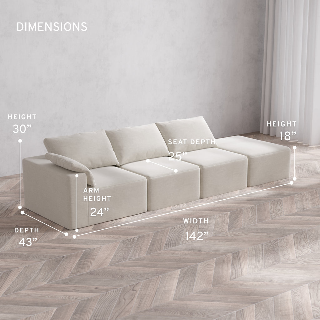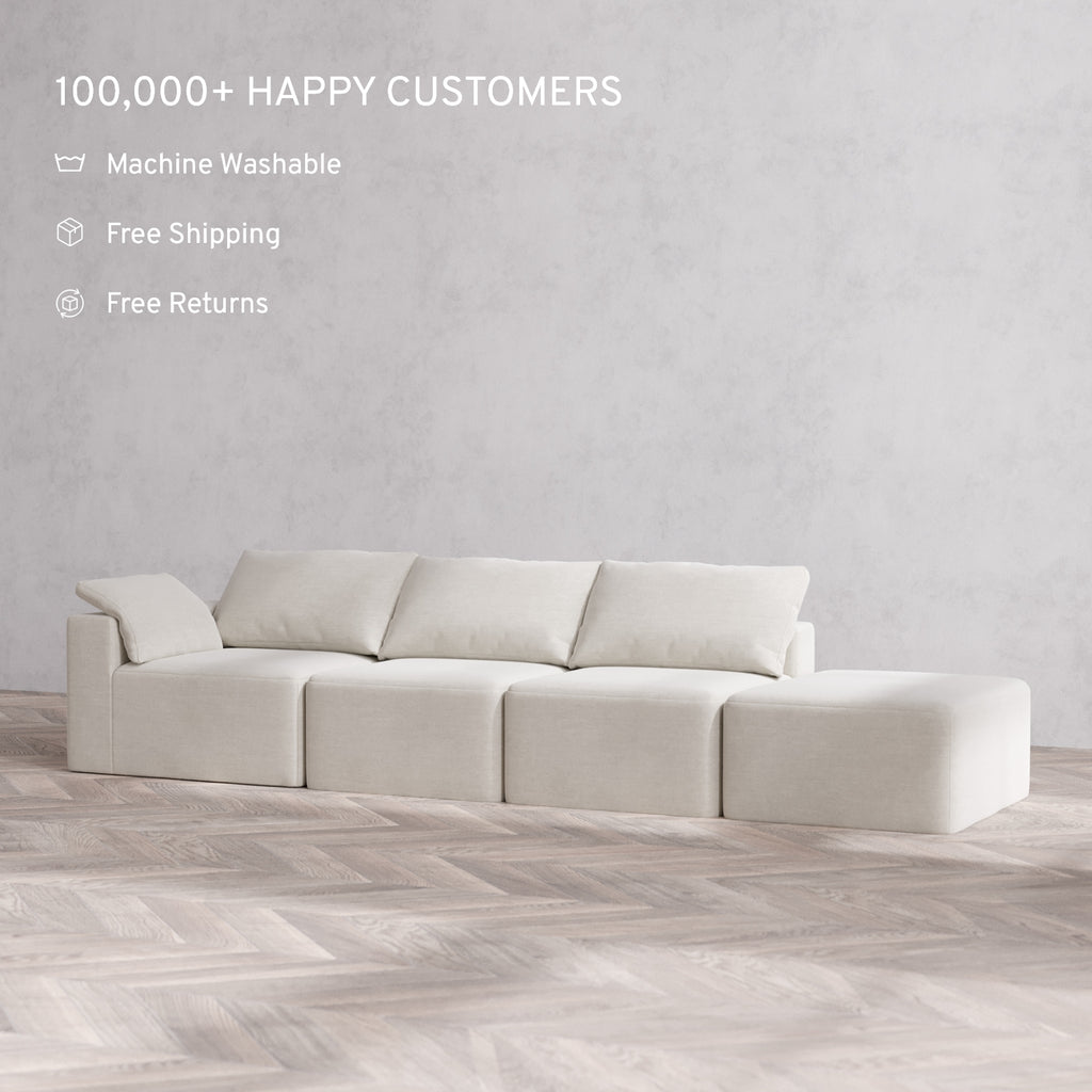 Machine Washable: Every piece of fabric—including the internal quilted duvet—is fully removable and machine washable. It’s the only Cloud-style sofa you can truly deep clean, effortlessly.