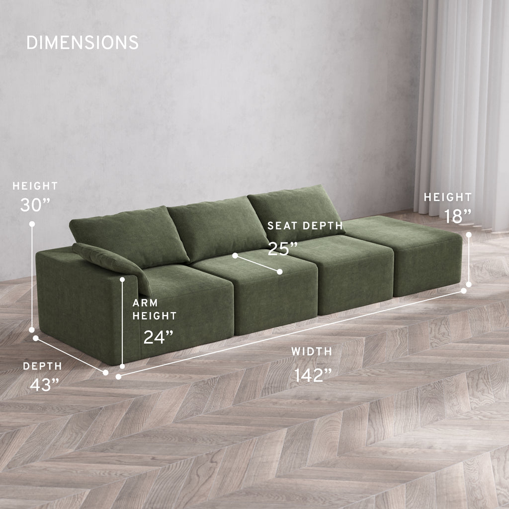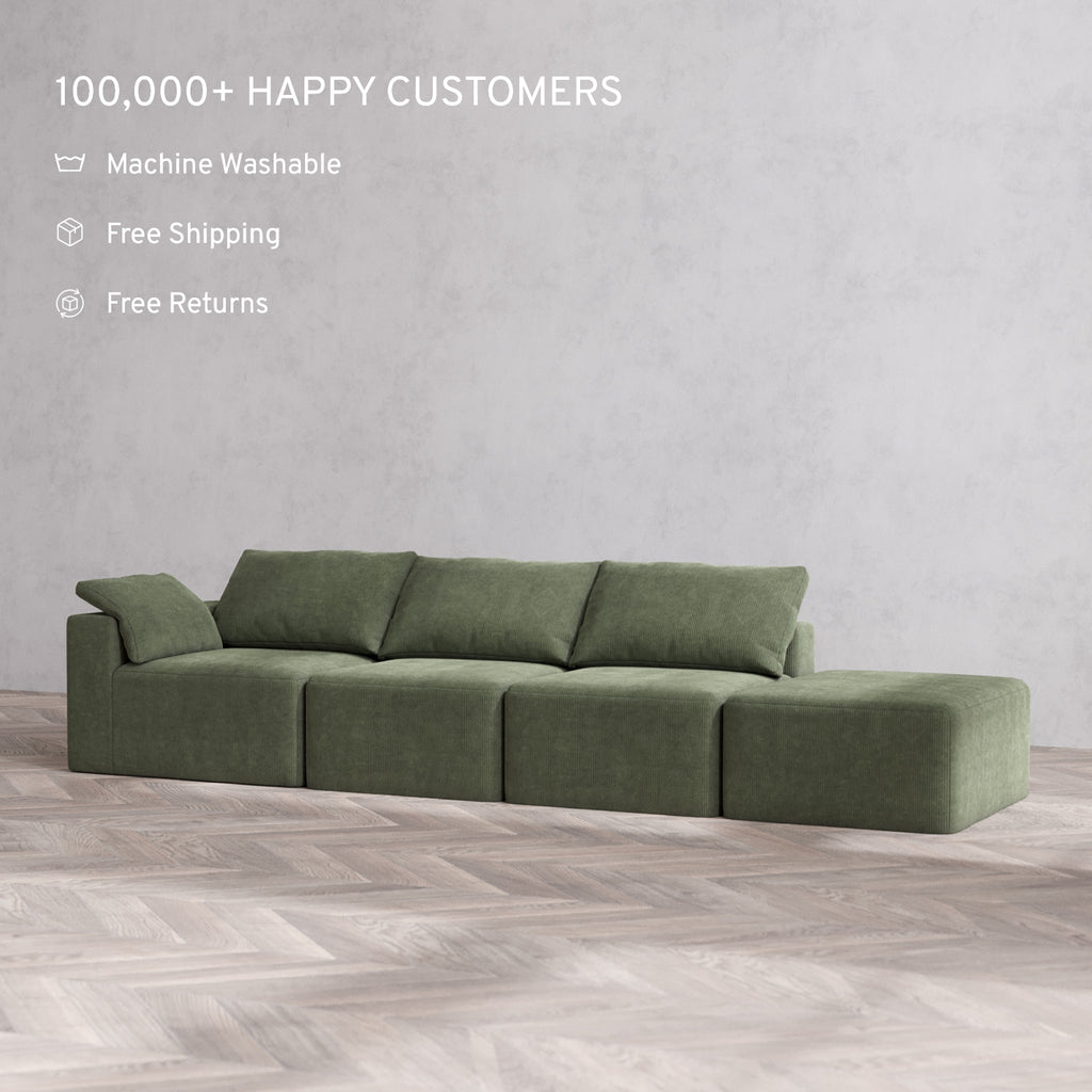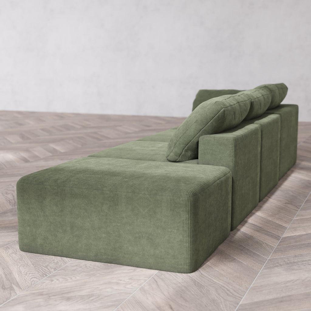 Modular Washable 3-Seater Open End Cloud Sofa | Left-Facing Arm | Luxe Corduroy in Juniper