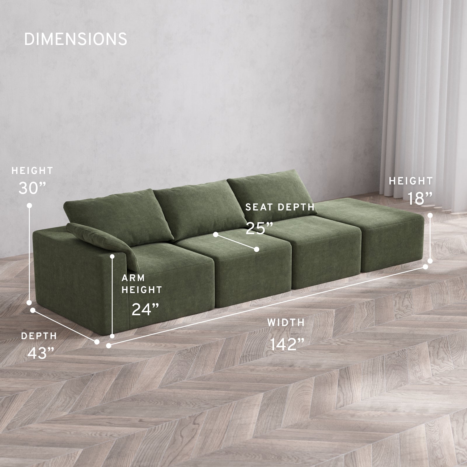 Please note, the natural characteristics of foam may compound the total dimensions by 1/2” to 1” per module.