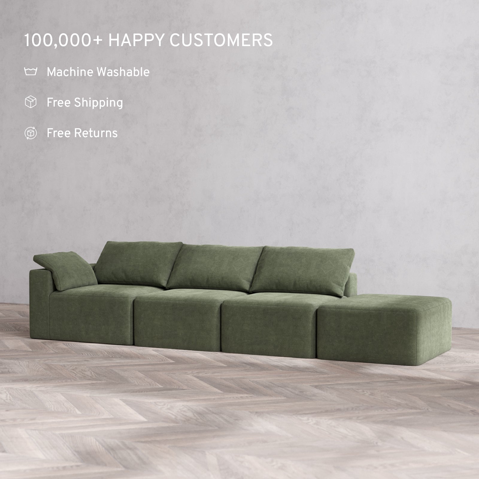 Machine Washable: Every piece of fabric—including the internal quilted duvet—is fully removable and machine washable. It’s the only Cloud-style sofa you can truly deep clean, effortlessly.