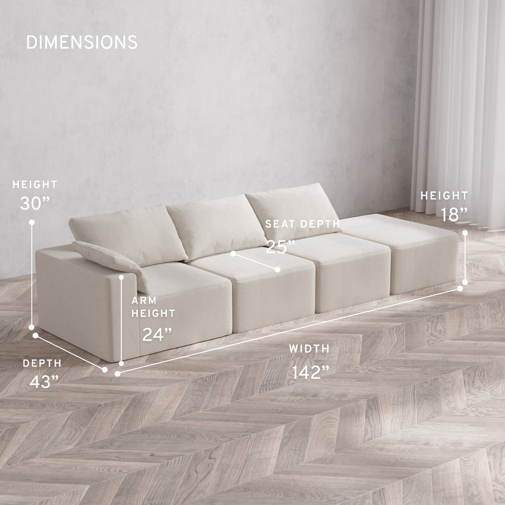 Modular Washable 3-Seater Open End Cloud Sofa | Left-Facing Arm | Lux Weave in Pearl