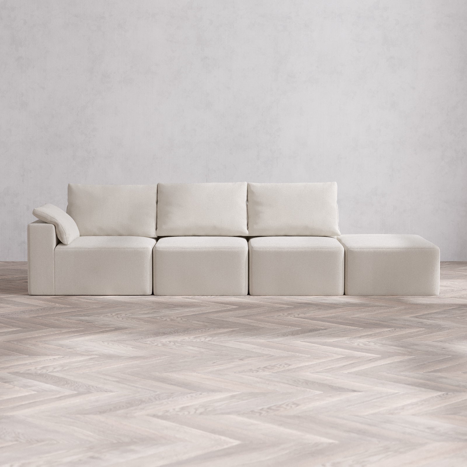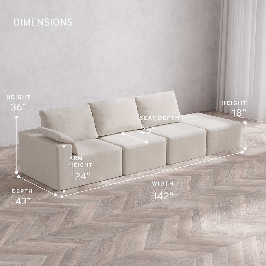 Modular Washable 3-Seater Open End Cloud + Bolster Sofa | Left-Facing Arm | Lux Weave in Pearl