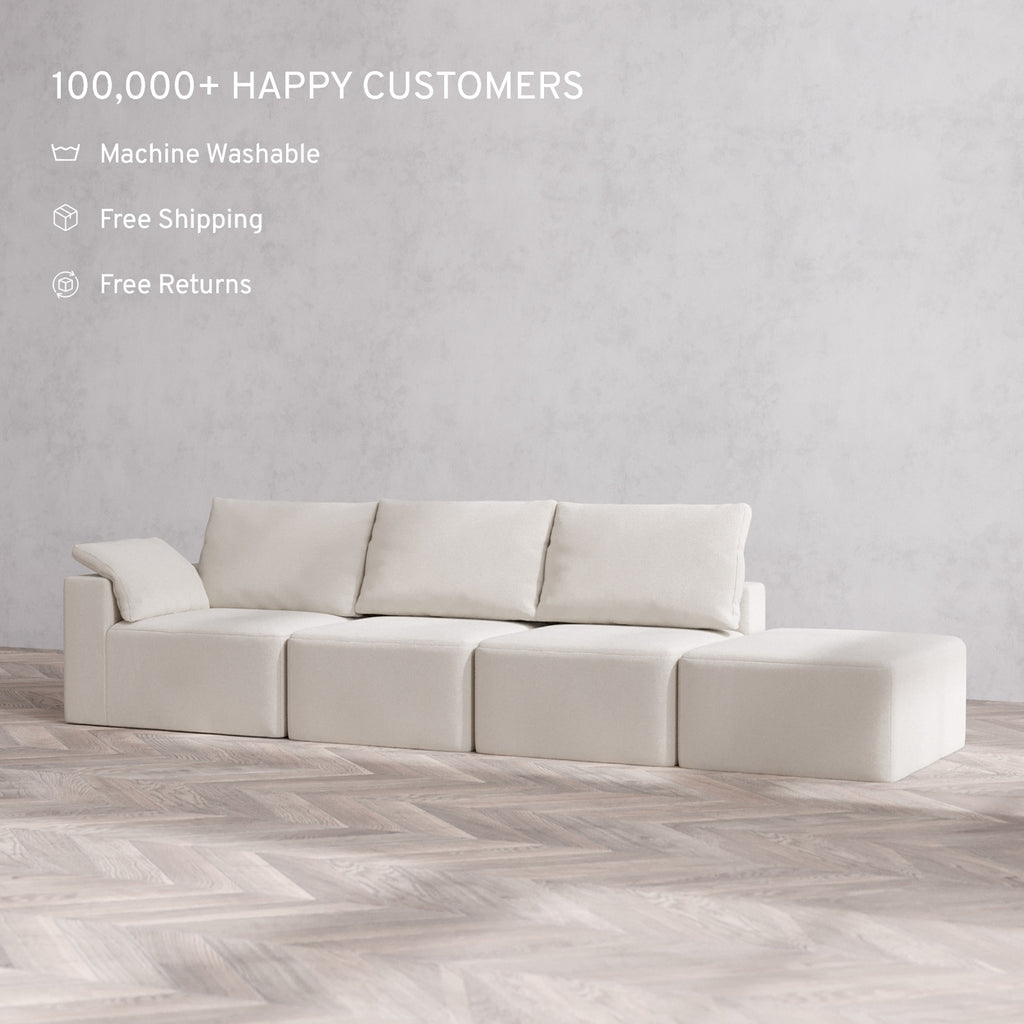 Machine Washable: Every piece of fabric—including the internal quilted duvet—is fully removable and machine washable. It’s the only Cloud-style sofa you can truly deep clean, effortlessly.