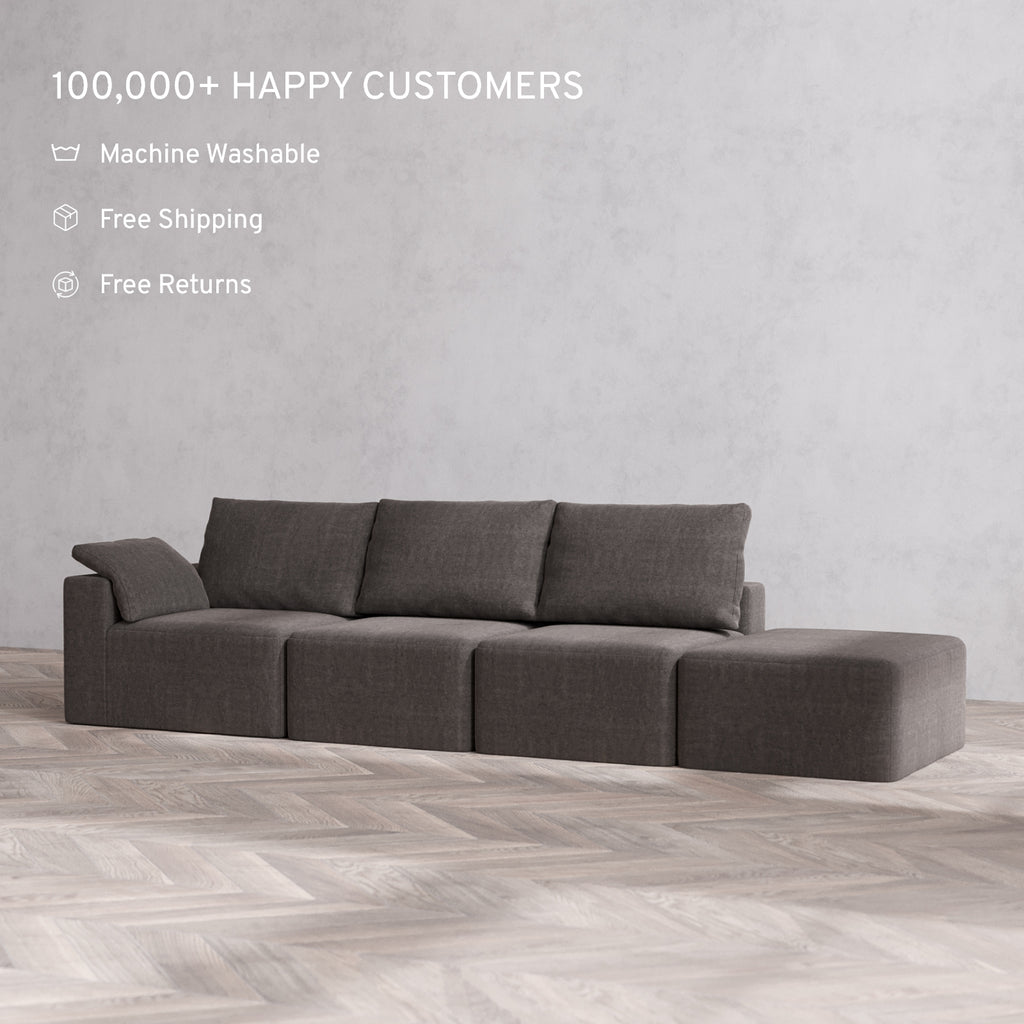 Machine Washable: Every piece of fabric—including the internal quilted duvet—is fully removable and machine washable. It’s the only Cloud-style sofa you can truly deep clean, effortlessly.