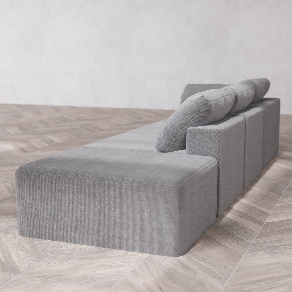 Modular Washable 3-Seater Open End Cloud Sofa | Left-Facing Arm | Lux Weave in Slate