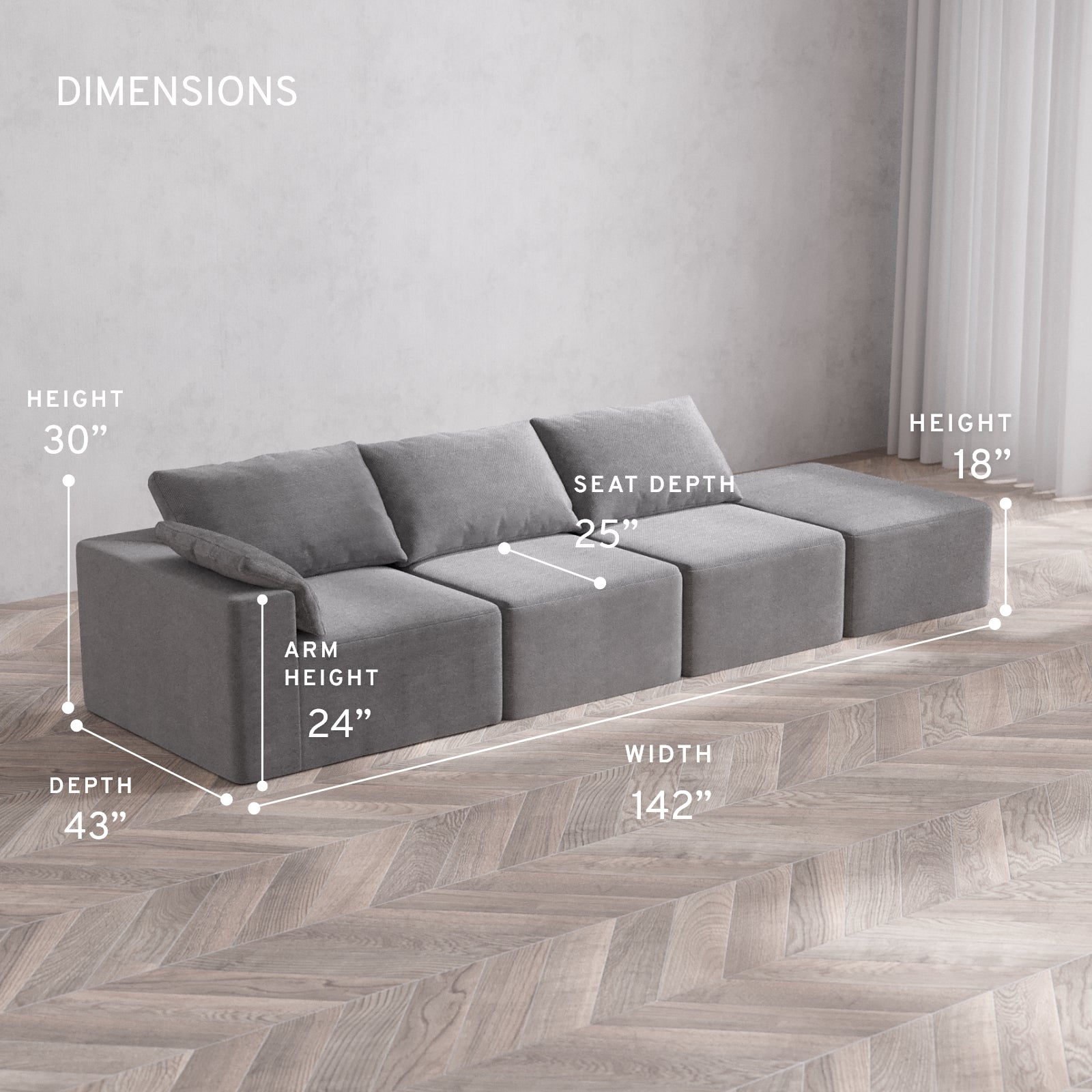 Please note, the natural characteristics of foam may compound the total dimensions by 1/2” to 1” per module.