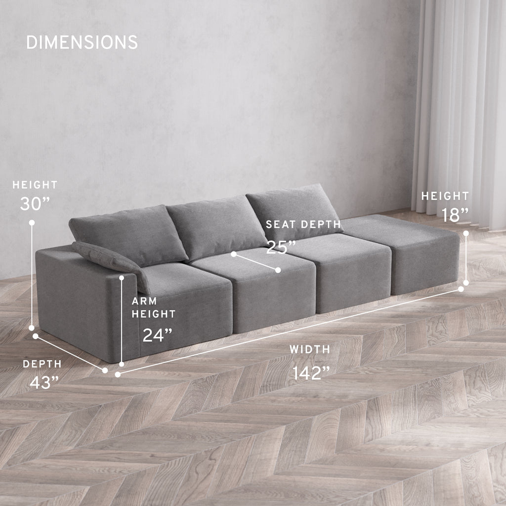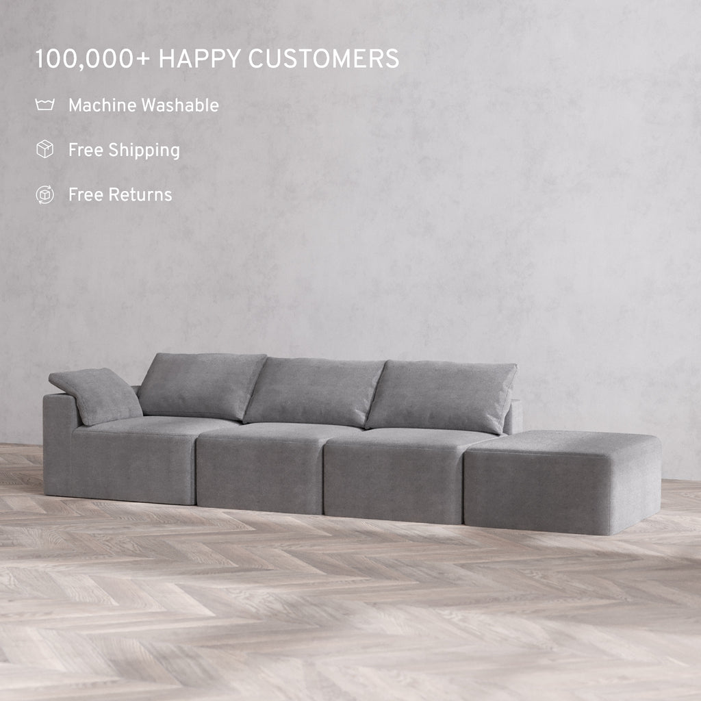 Machine Washable: Every piece of fabric—including the internal quilted duvet—is fully removable and machine washable. It’s the only Cloud-style sofa you can truly deep clean, effortlessly.