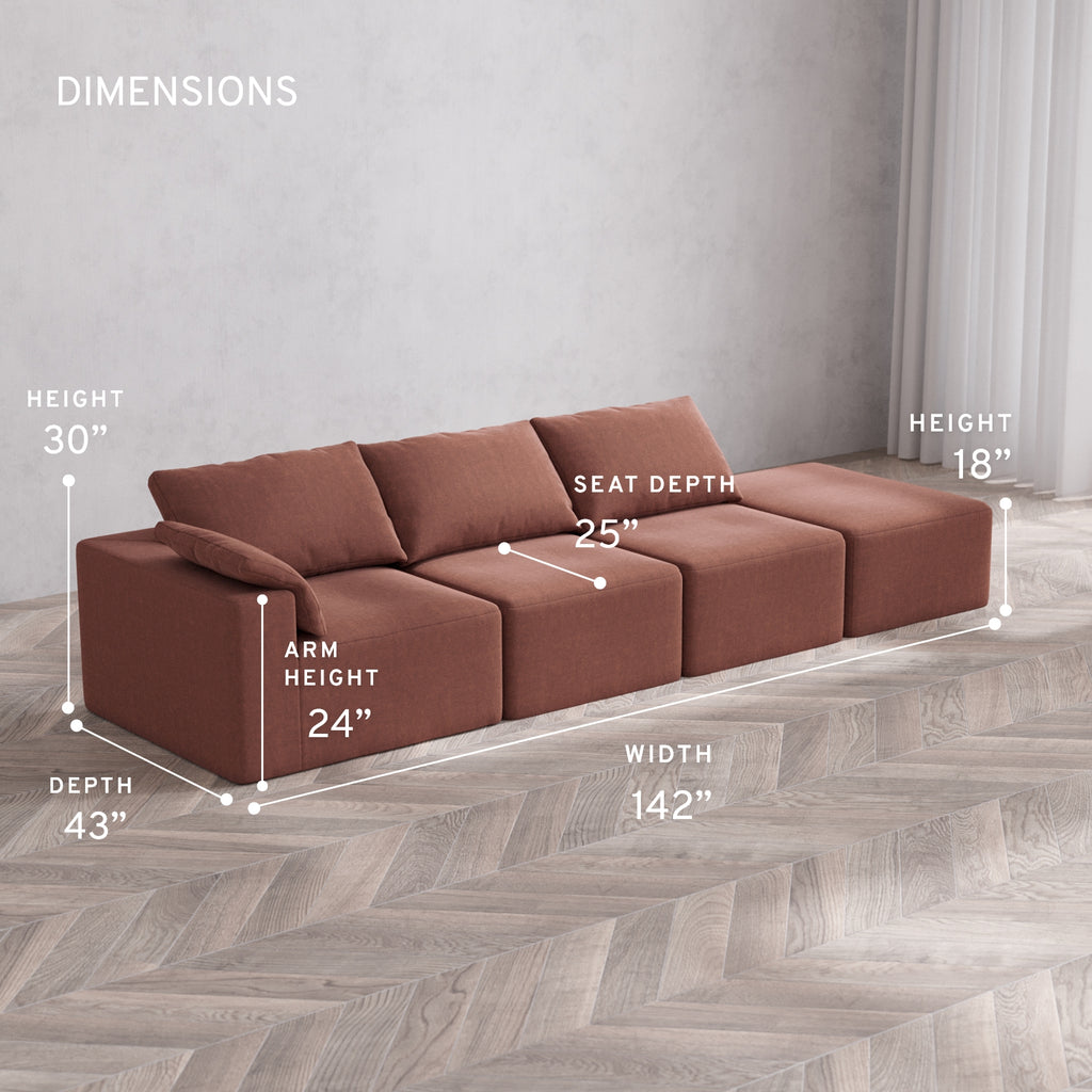 Machine Washable: Every piece of fabric—including the internal quilted duvet—is fully removable and machine washable. It’s the only Cloud-style sofa you can truly deep clean, effortlessly.
