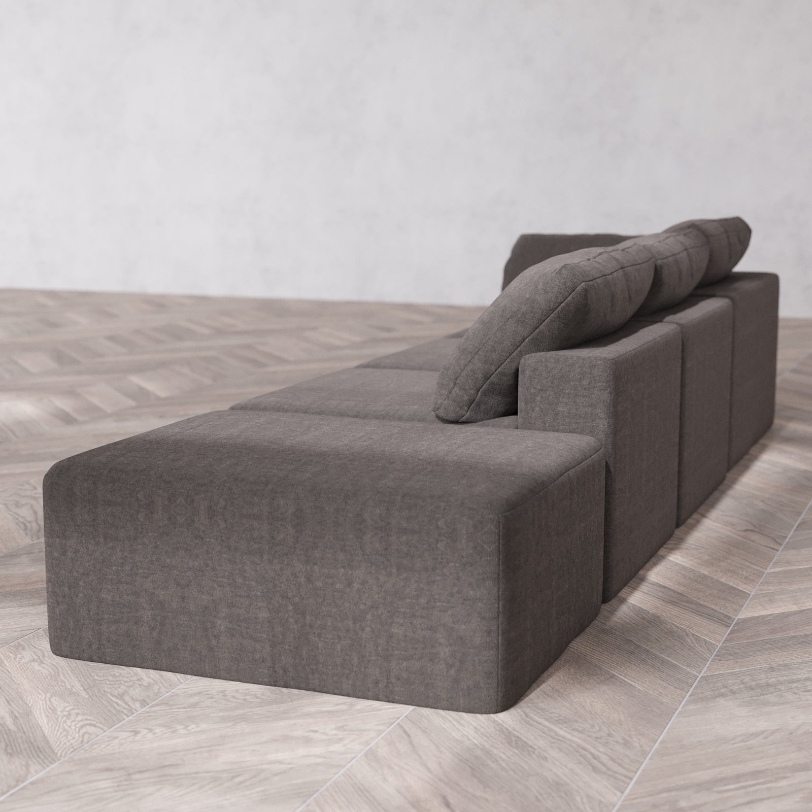 Modular Washable 3-Seater Open End Cloud Sofa | Left-Facing Arm | Heirloom Velvet in Truffle