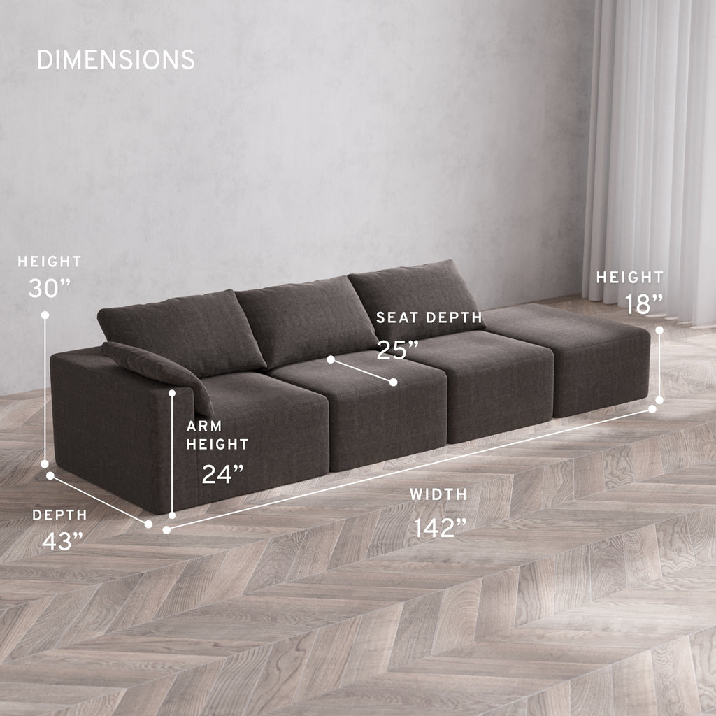 Machine Washable: Every piece of fabric—including the internal quilted duvet—is fully removable and machine washable. It’s the only Cloud-style sofa you can truly deep clean, effortlessly.