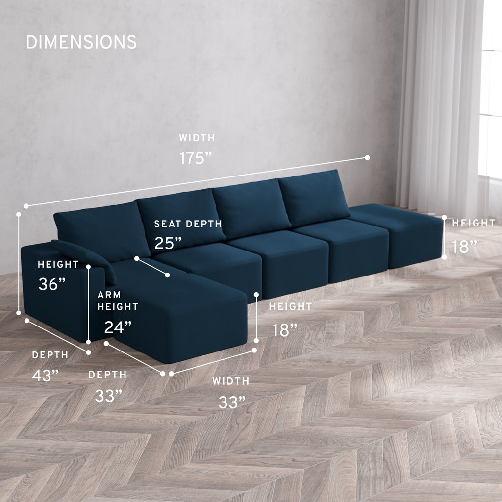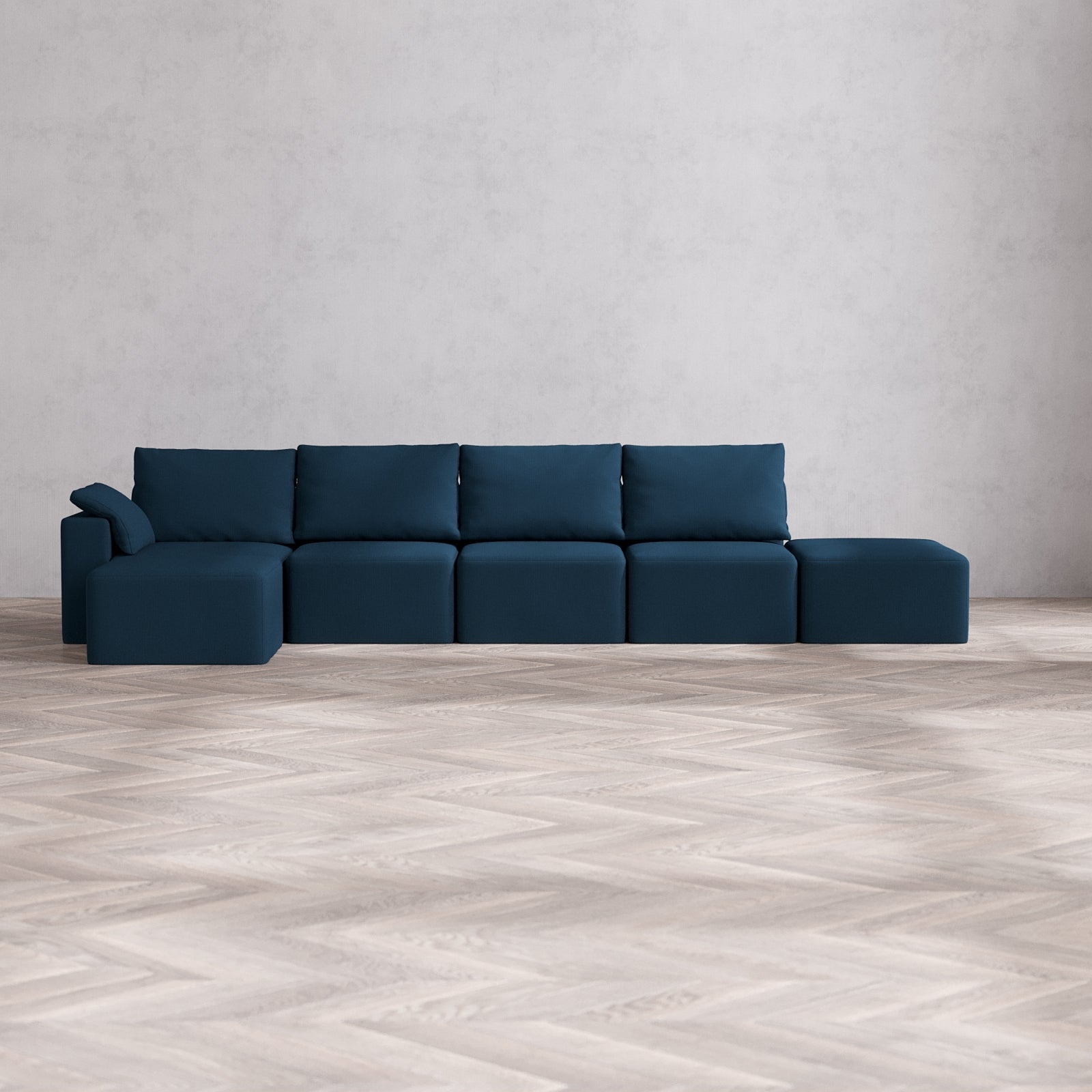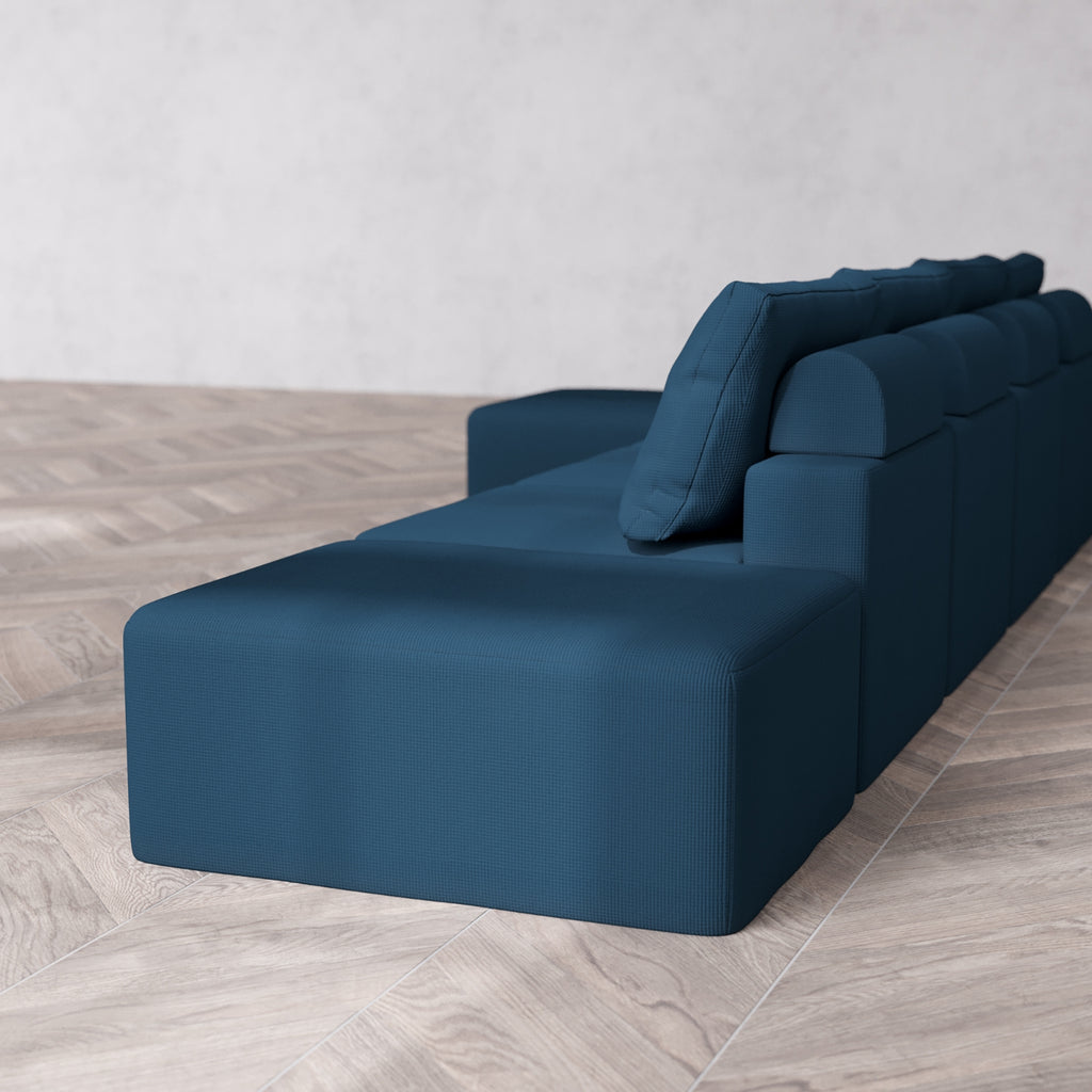 Modular Washable 4-Seater Open End Sectional Cloud + Bolster Sofa | Left-Facing Arm | Arden Weave in Lazuli
