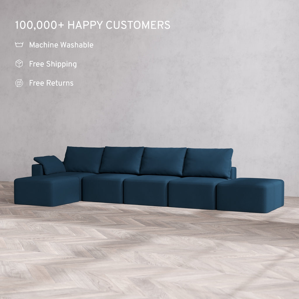 Machine Washable: Every piece of fabric—including the internal quilted duvet—is fully removable and machine washable. It’s the only Cloud-style sofa you can truly deep clean, effortlessly.