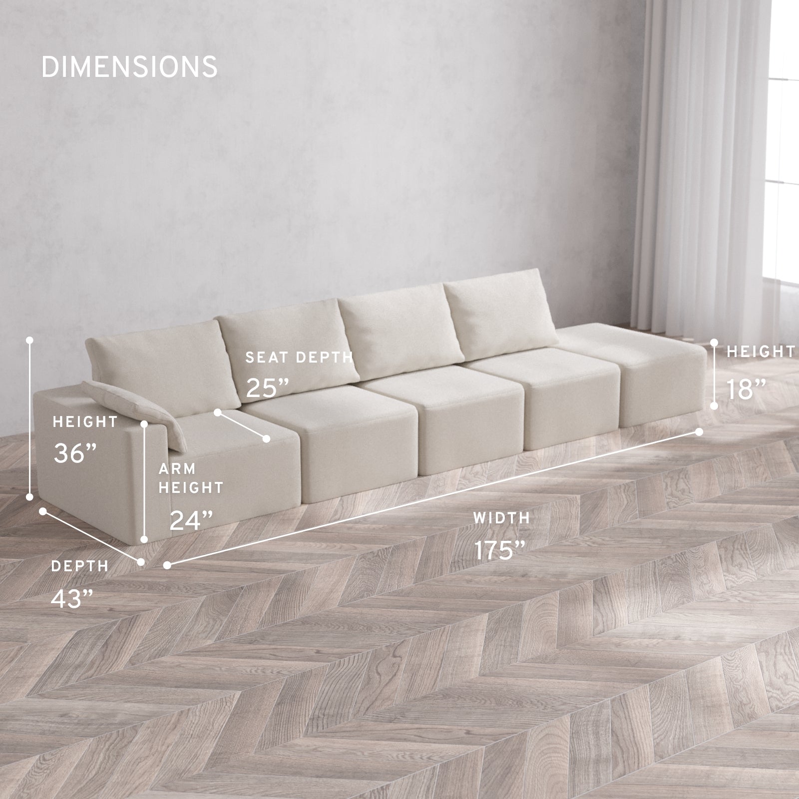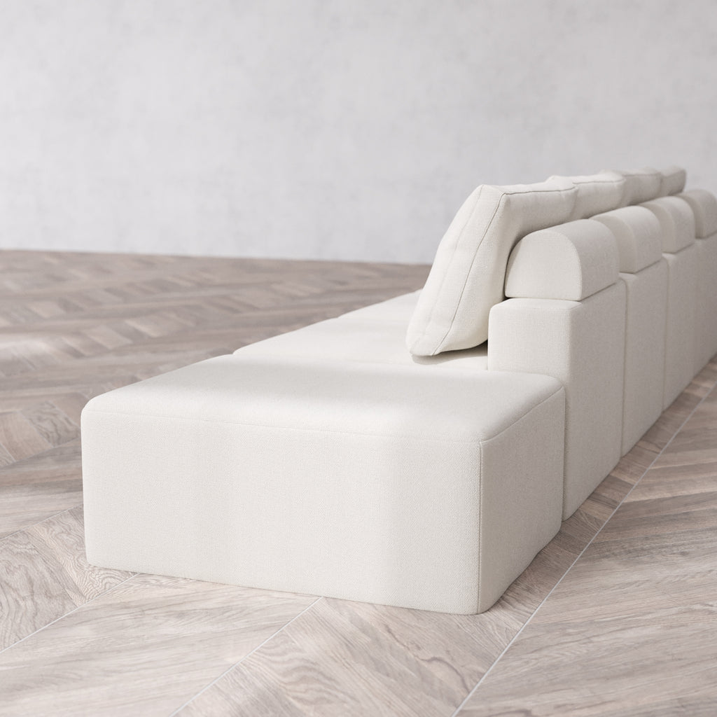 Modular Washable 4-Seater Open End Cloud + Bolster Sofa | Left-Facing Arm | Lux Weave in Pearl