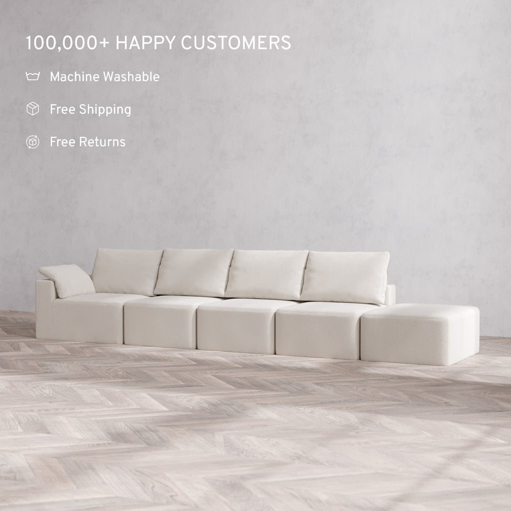 Machine Washable: Every piece of fabric—including the internal quilted duvet—is fully removable and machine washable. It’s the only Cloud-style sofa you can truly deep clean, effortlessly.