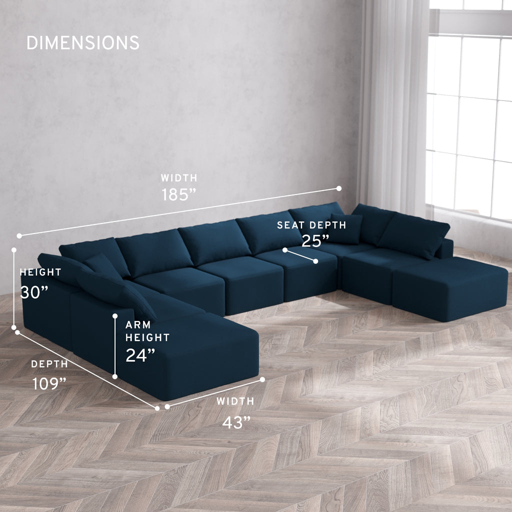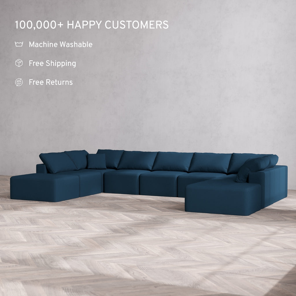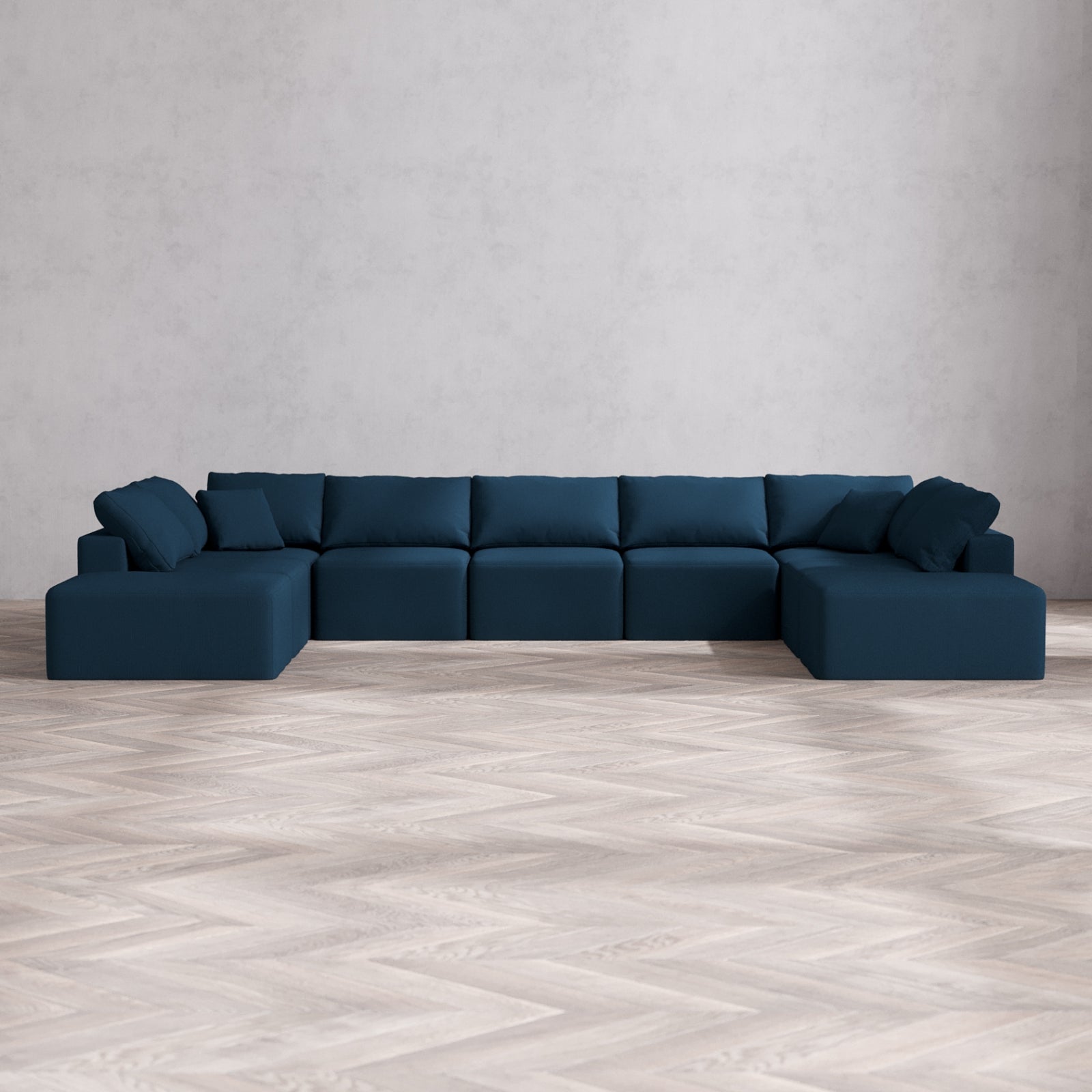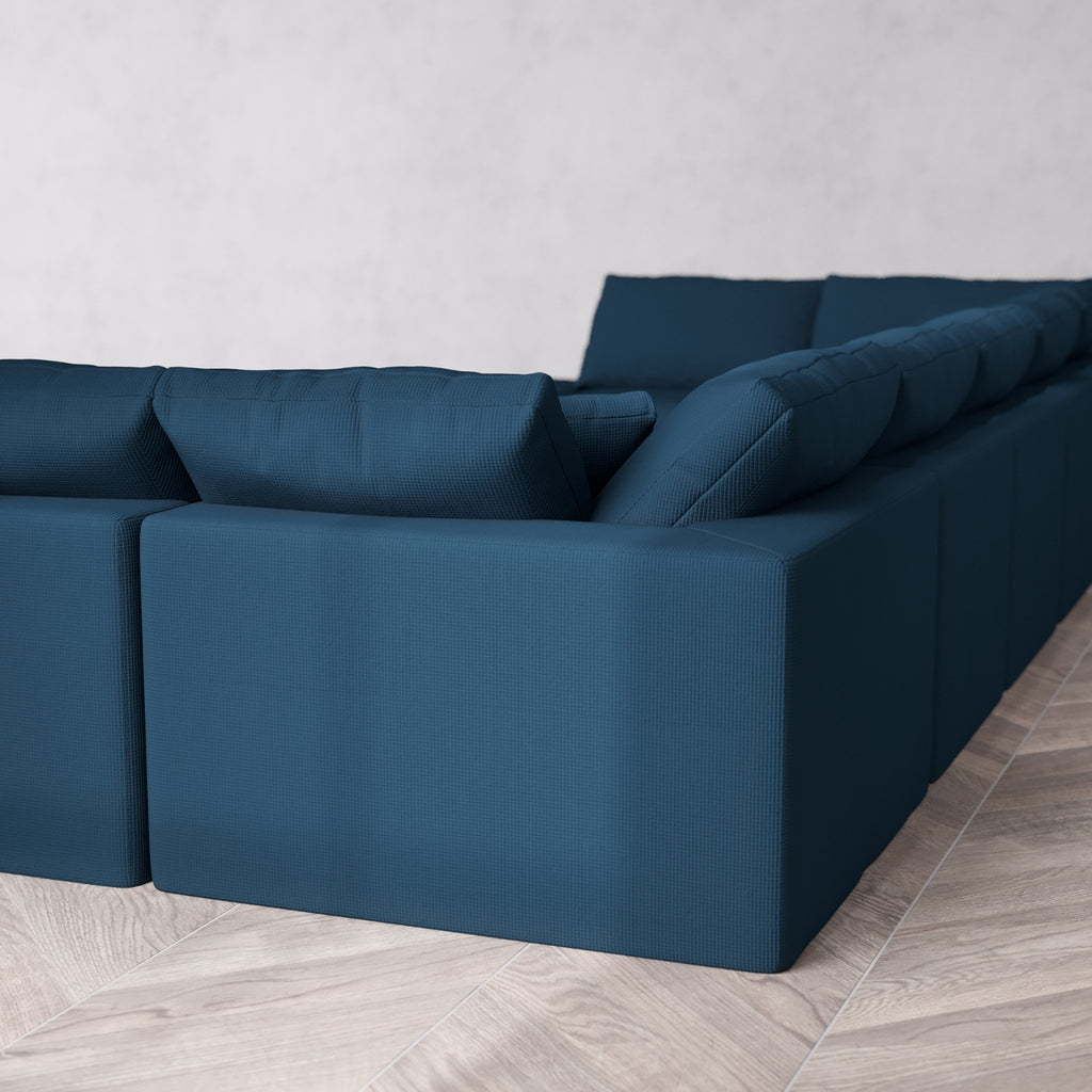 Modular Washable 9-Seater Open-Ends U Sectional Cloud Sofa | Arden Weave in Lazuli