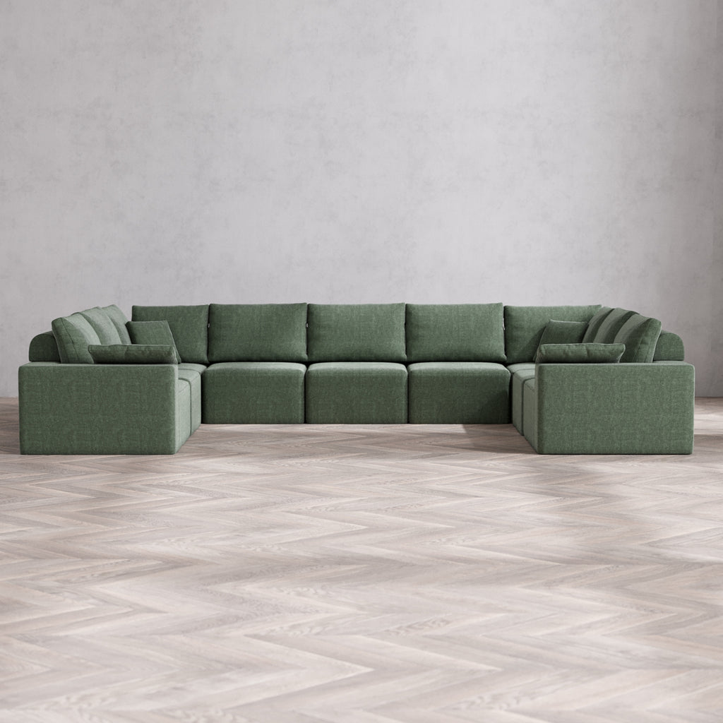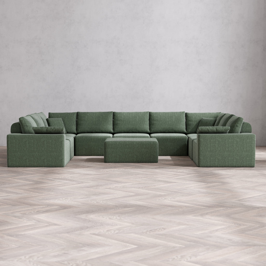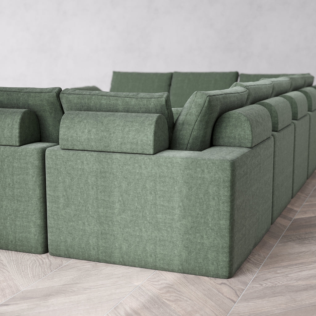 Modular Washable 9-Seater U Sectional + Chaise Ottoman Cloud + Bolster Sofa | Heirloom Velvet in Sage