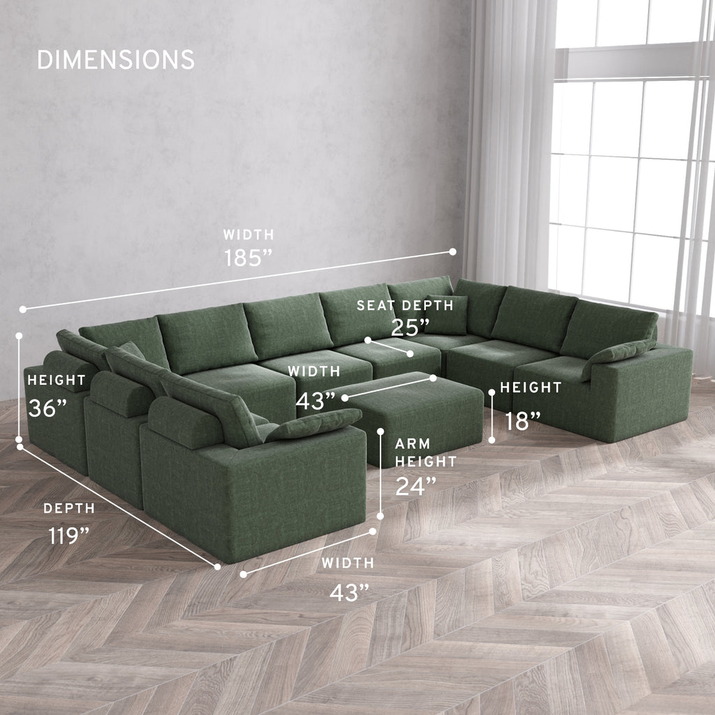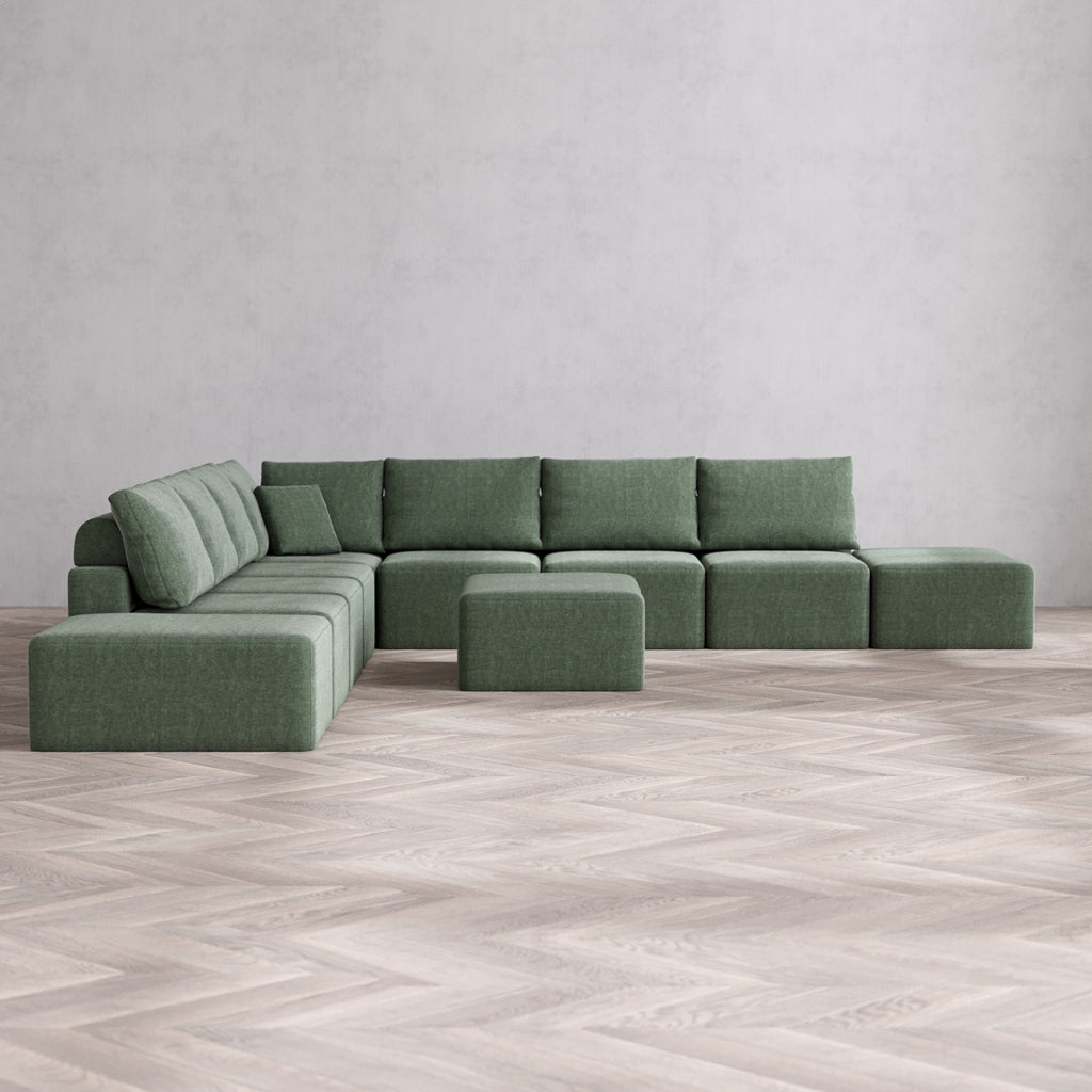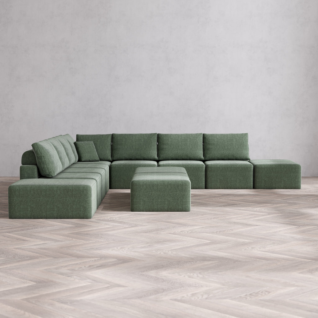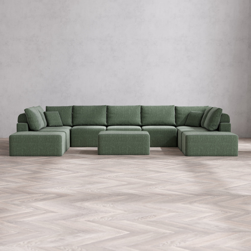 Modular Washable 9-Seater U Sectional + Chaise Ottoman Cloud + Bolster Sofa | Heirloom Velvet in Sage