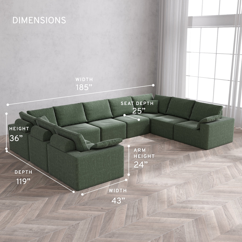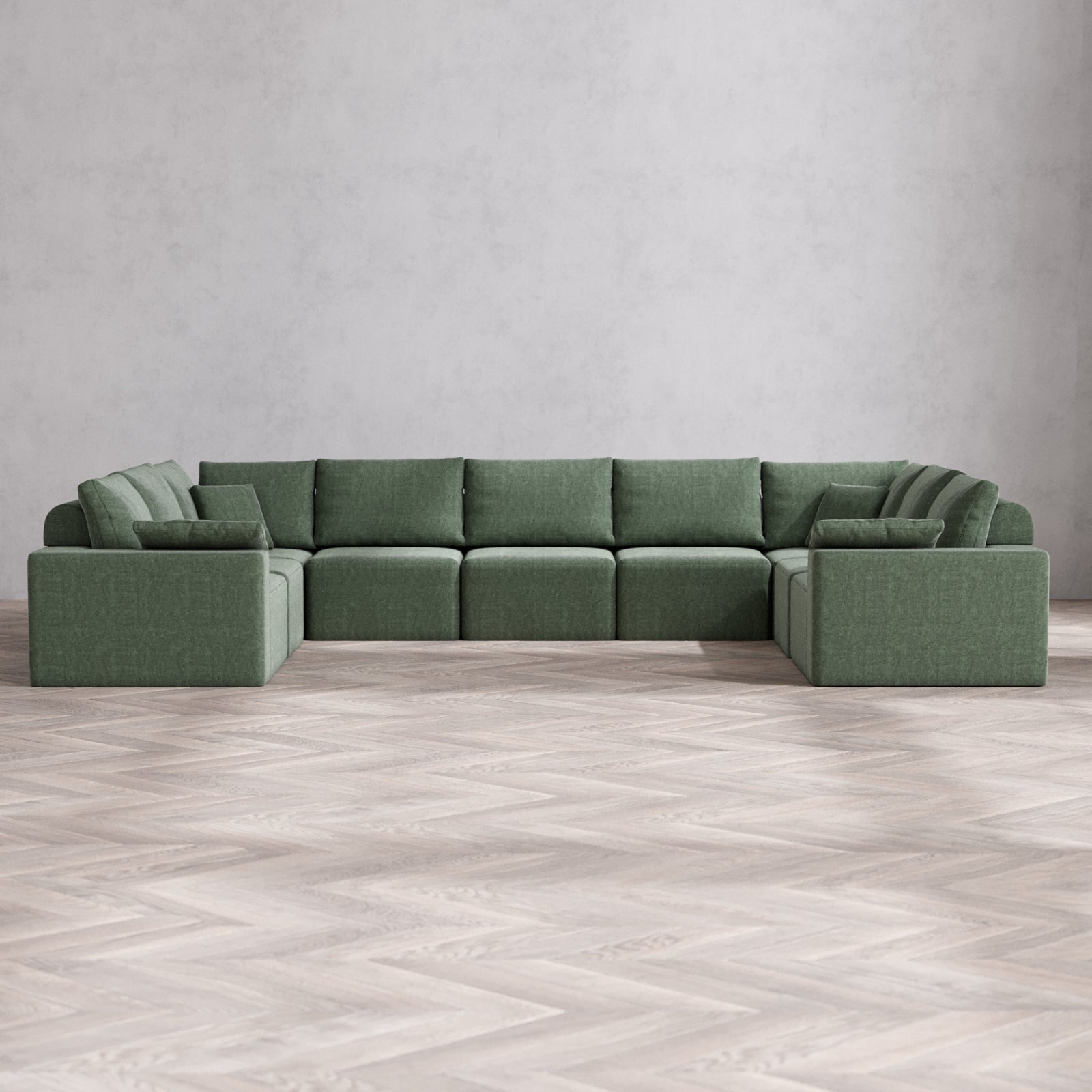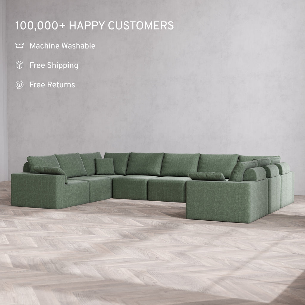 Modular Washable 9-Seater U Sectional Cloud + Bolster Sofa | Heirloom Velvet in Sage