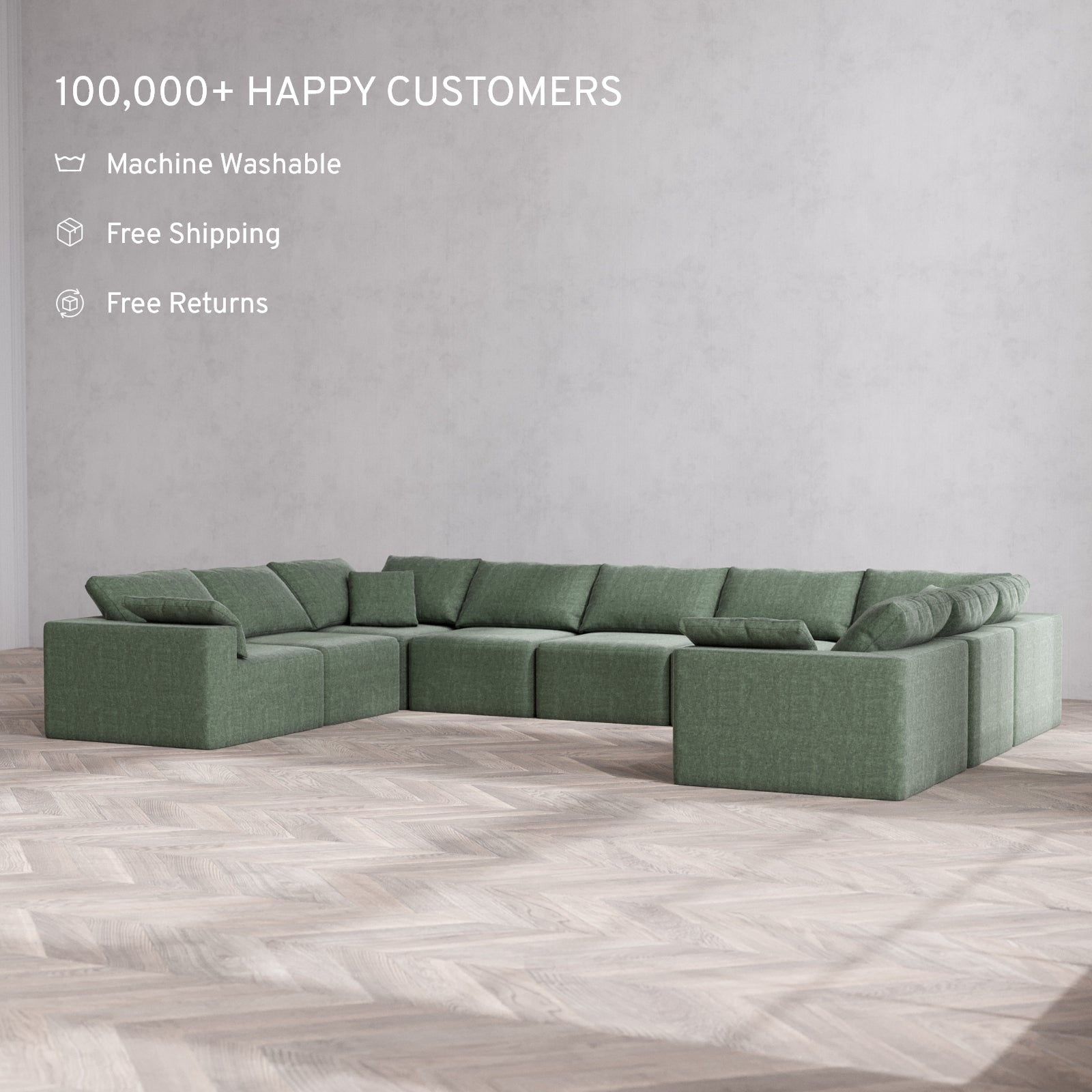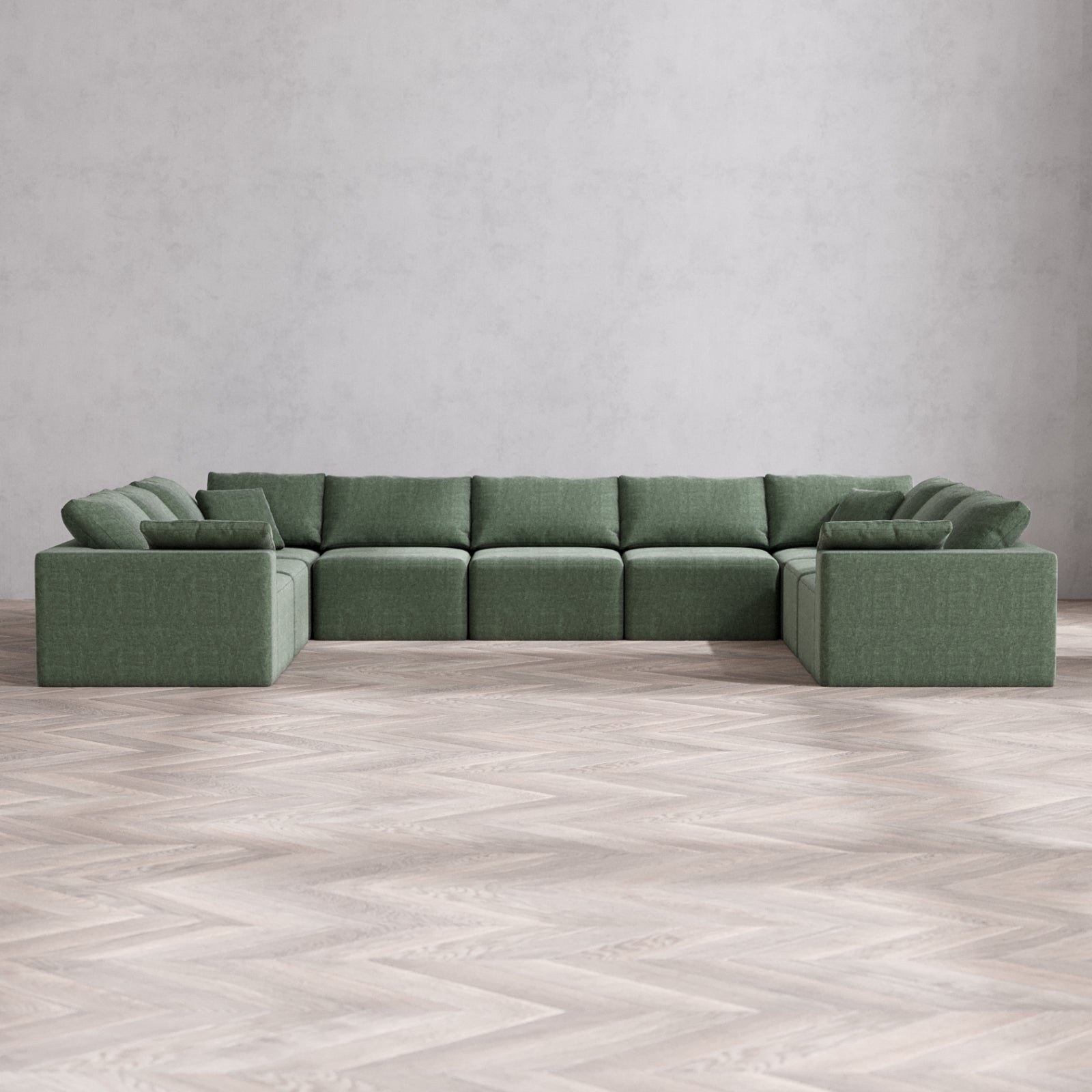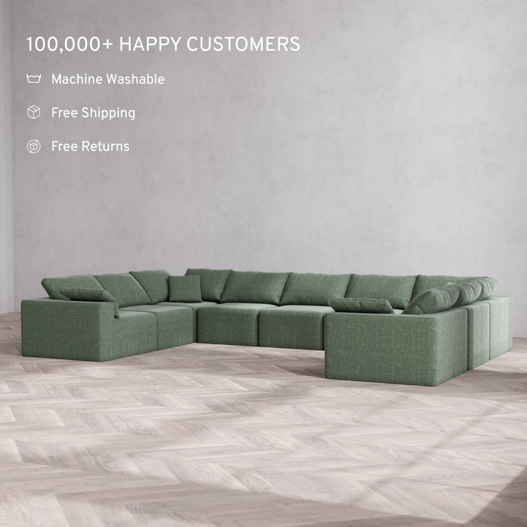 Modular Washable 9-Seater U Sectional Cloud Sofa | Heirloom Velvet in Sage