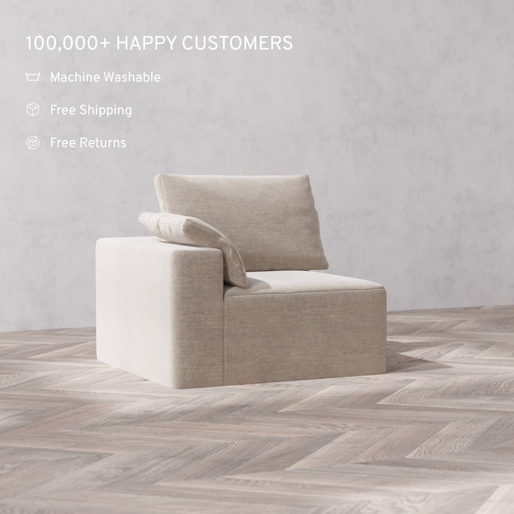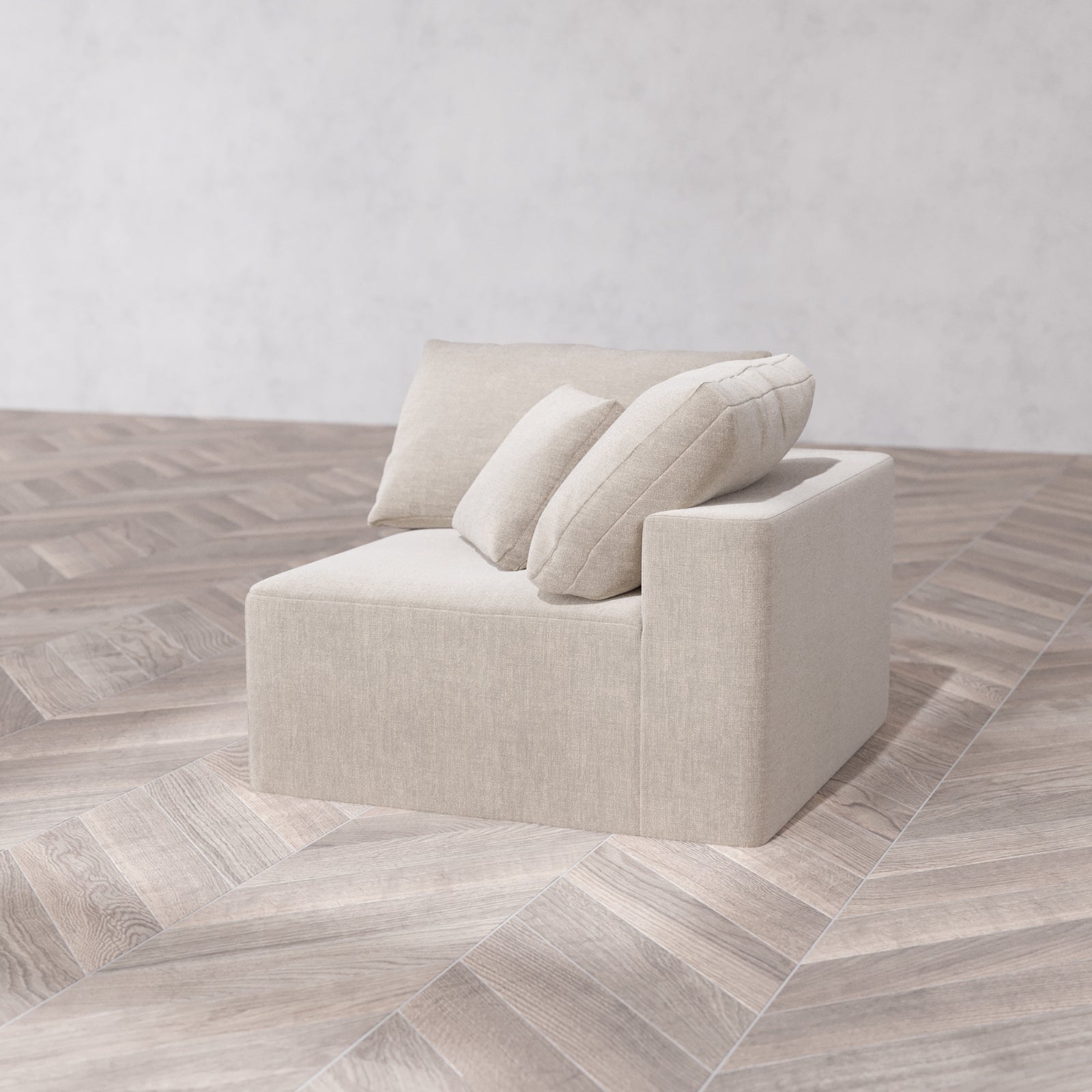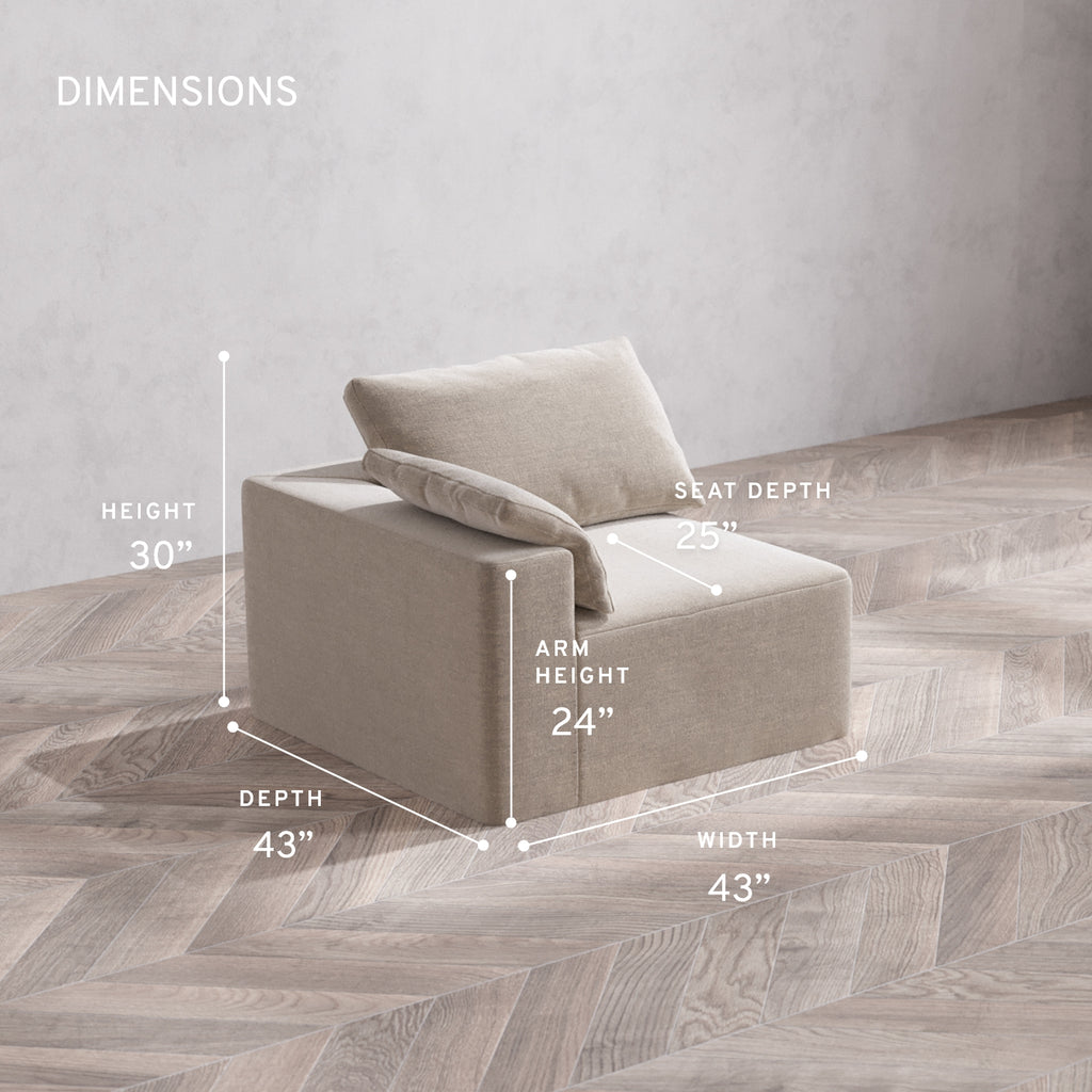 Modular Washable End Chair Cloud Sofa | Left-Facing Arm | Satin Velvet in Caraway