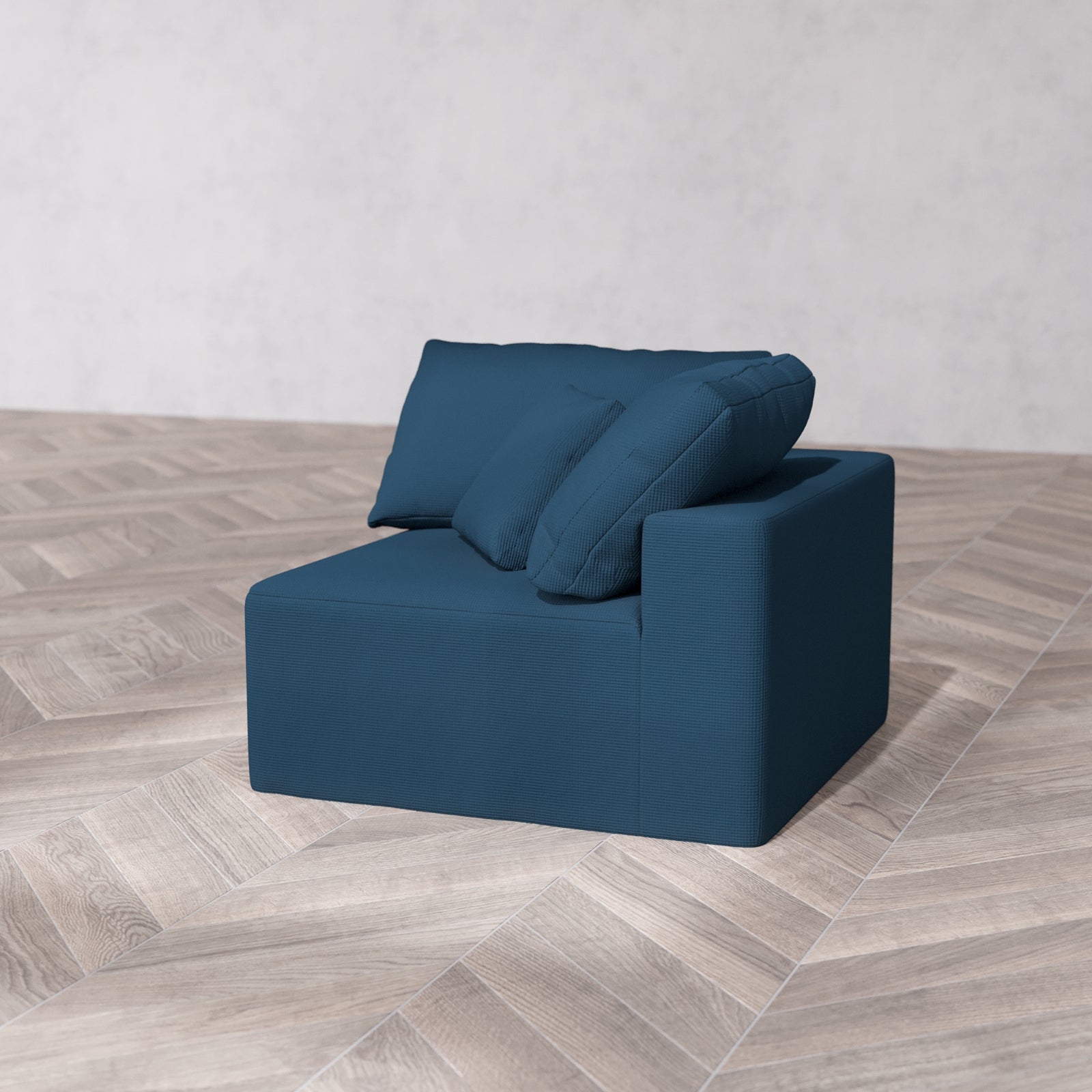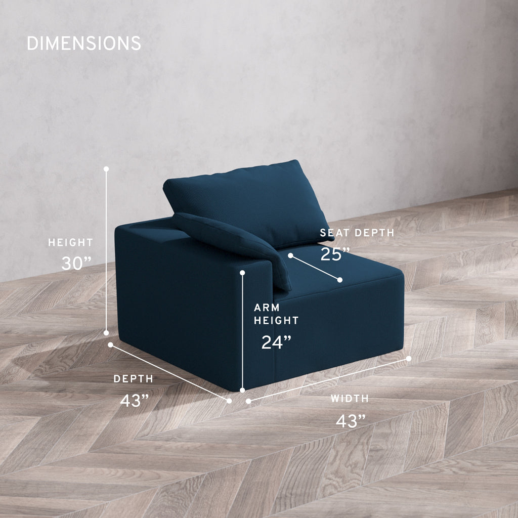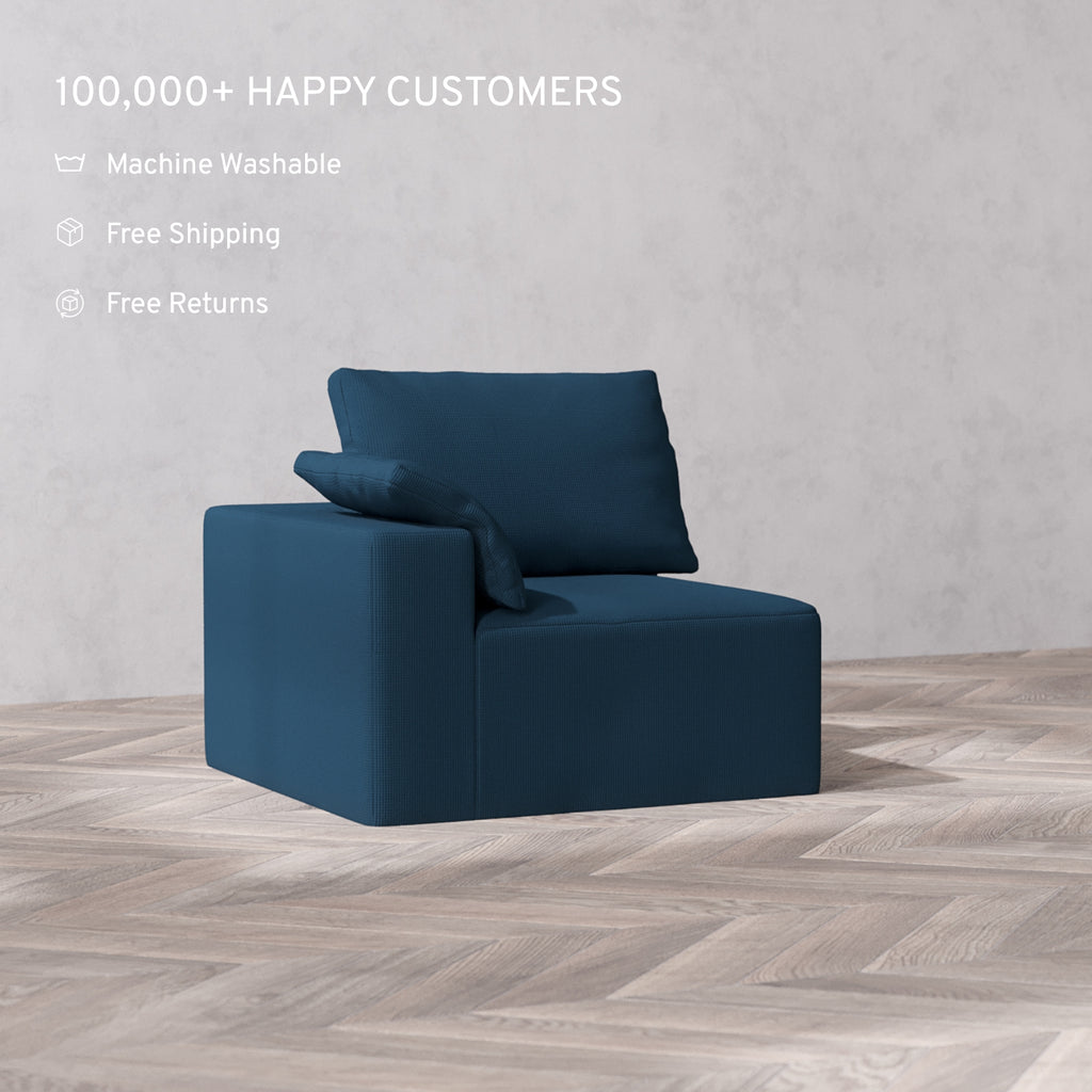 Modular Washable End Chair Cloud Sofa | Left-Facing Arm | Arden Weave in Lazuli