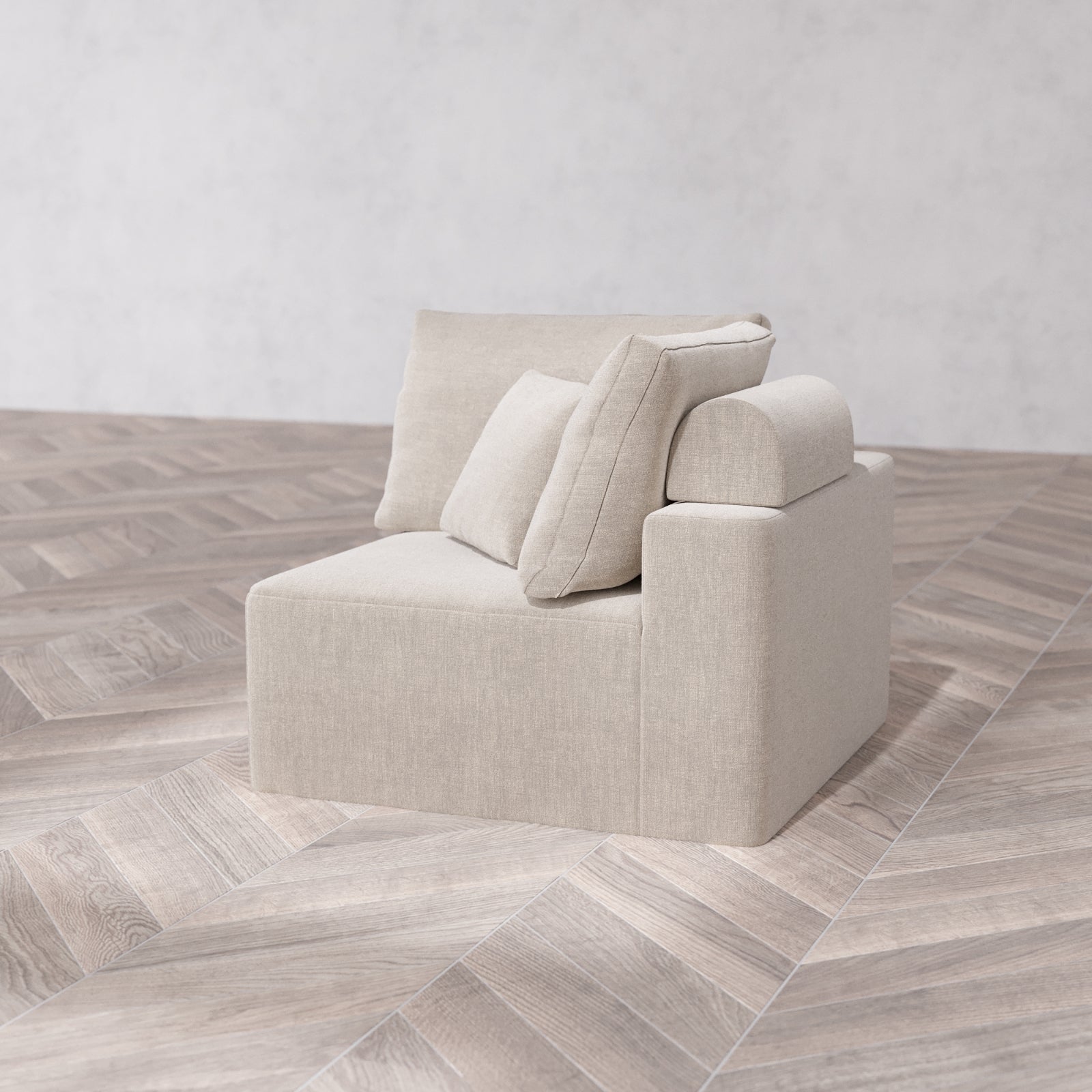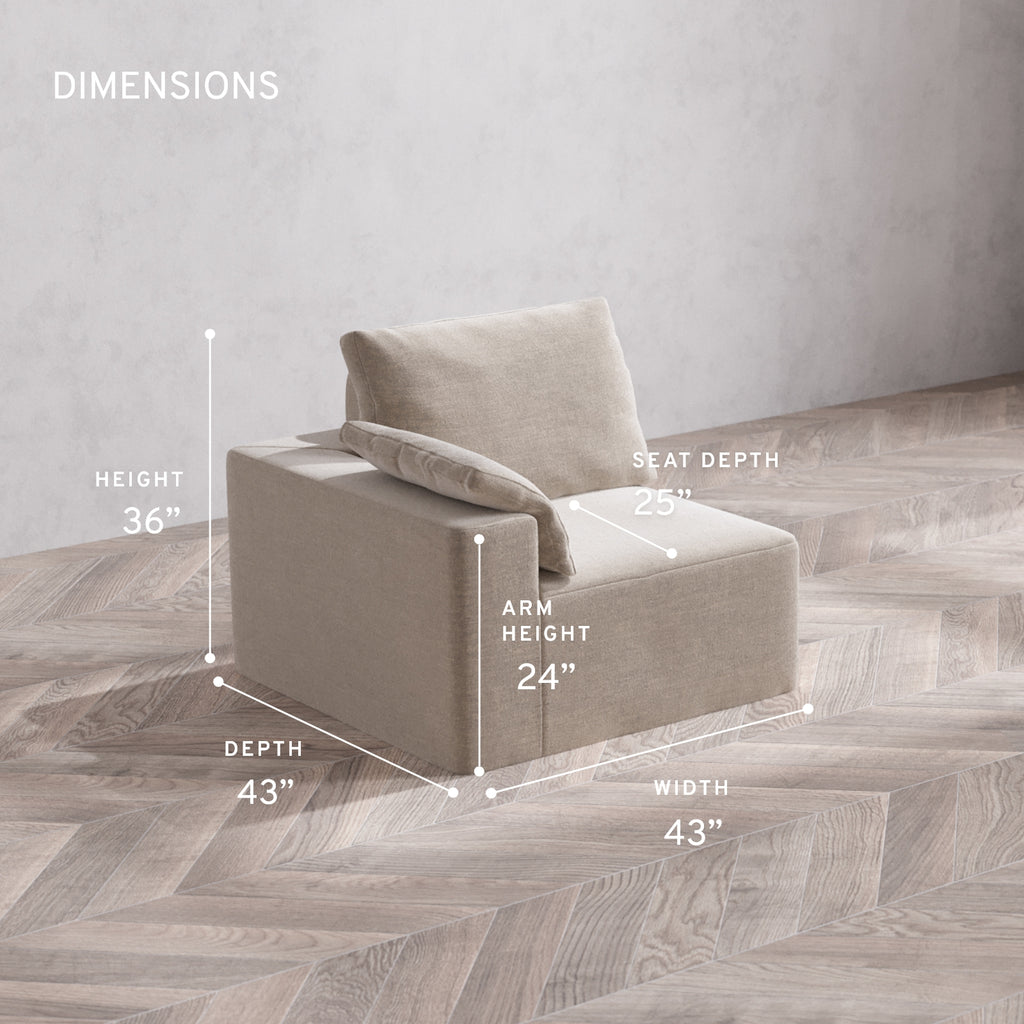 Modular Washable End Chair Cloud + Bolster Sofa | Left-Facing Arm | Satin Velvet in Caraway
