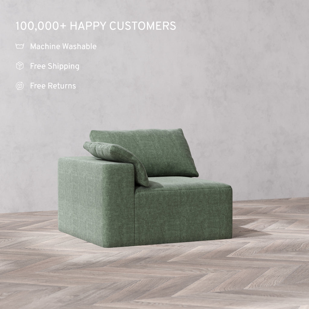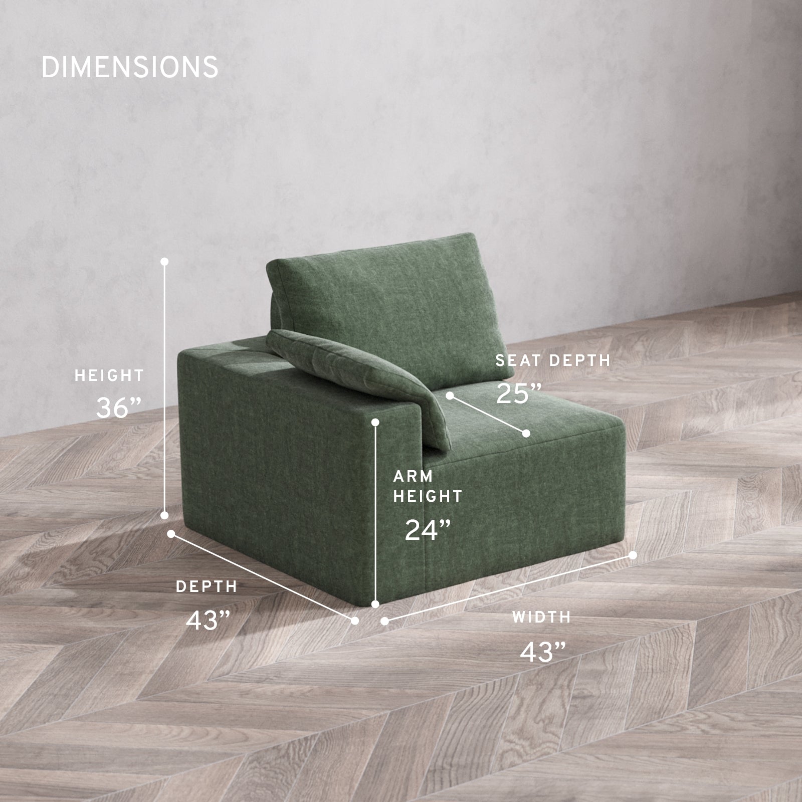 Modular Washable End Chair Cloud + Bolster Sofa | Left-Facing Arm | Heirloom Velvet in Sage