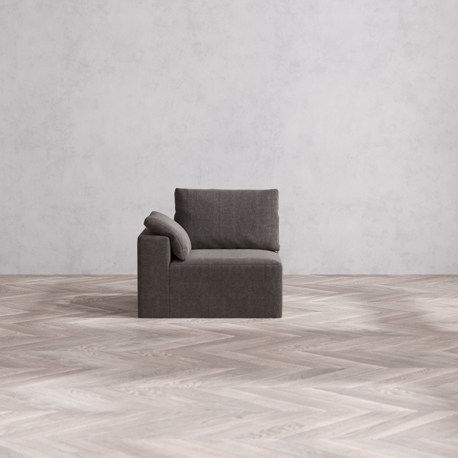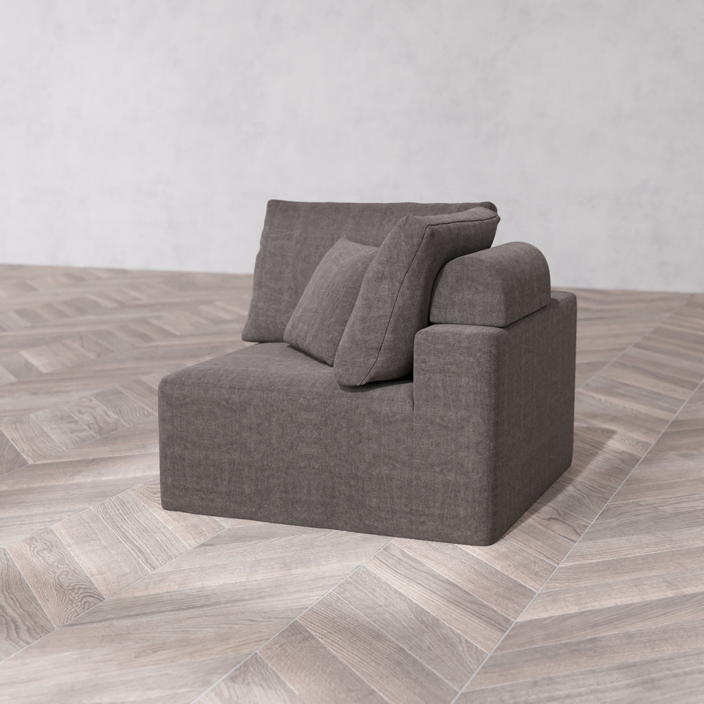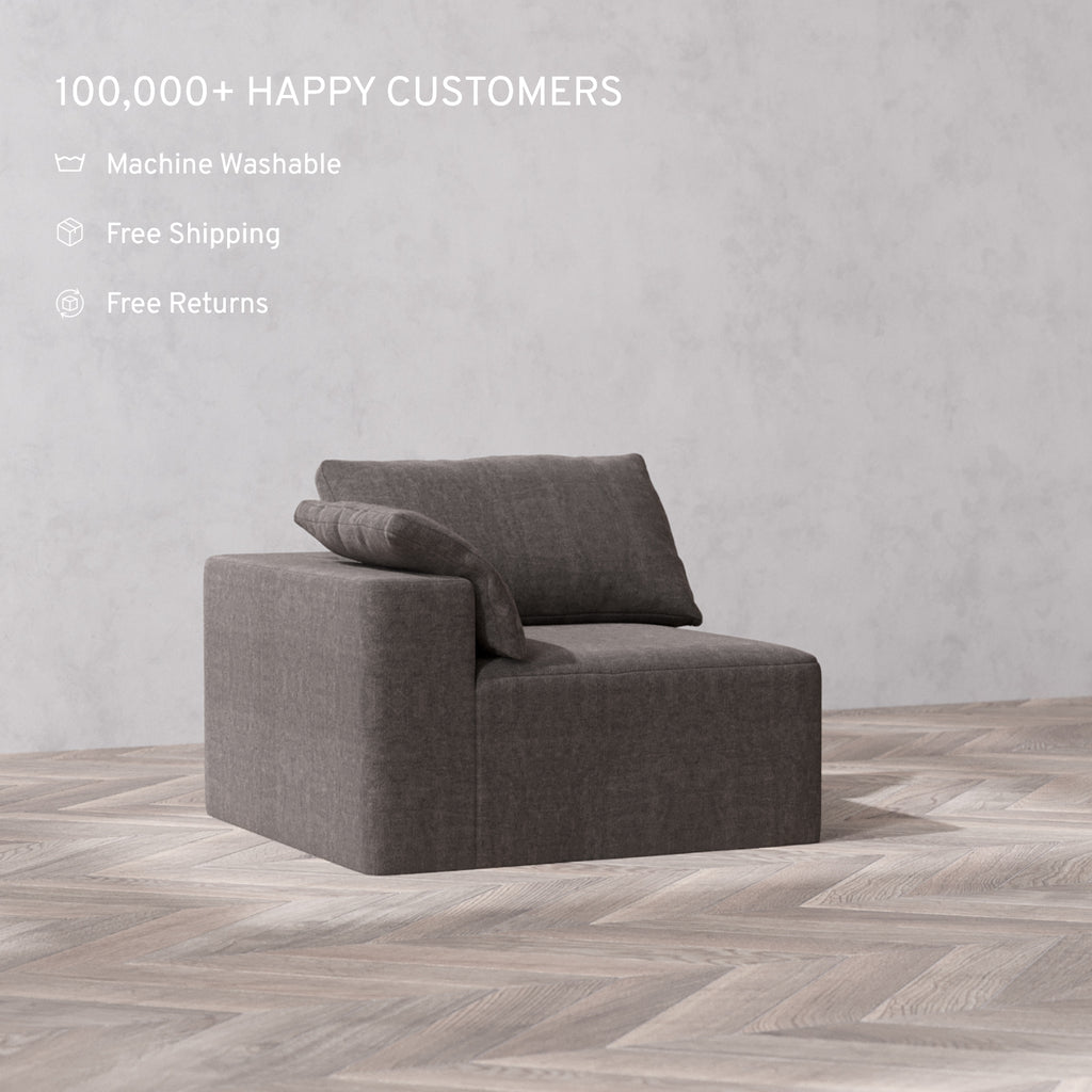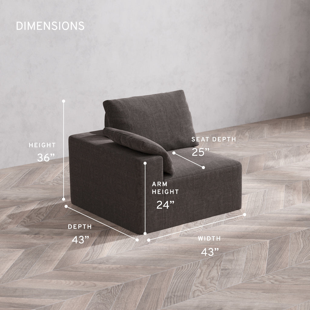 Modular Washable End Chair Cloud + Bolster Sofa | Left-Facing Arm | Heirloom Velvet in Truffle