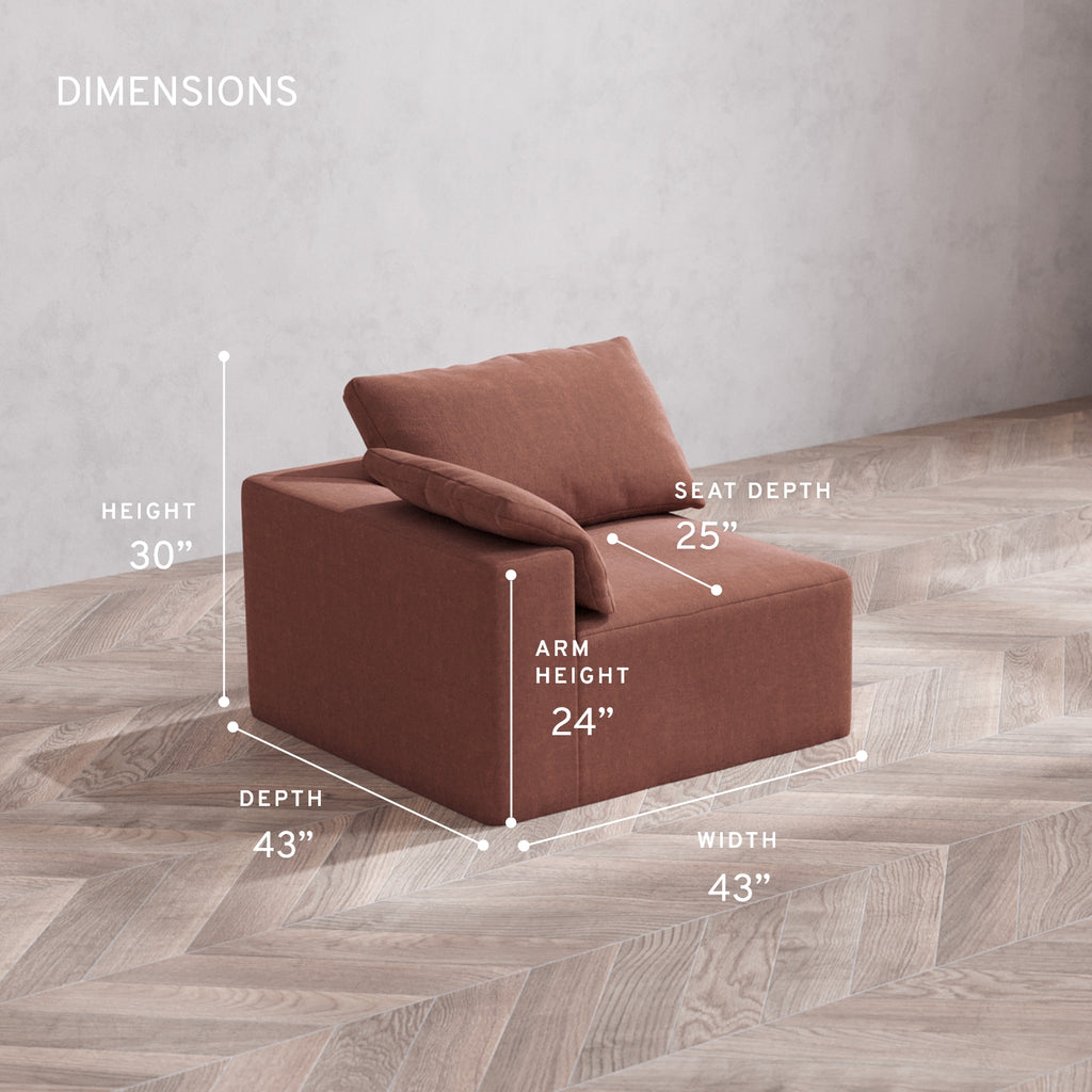 Modular Washable End Chair Cloud Sofa | Left-Facing Arm | Heirloom Velvet in Sumac