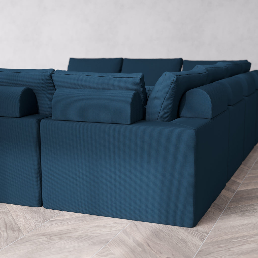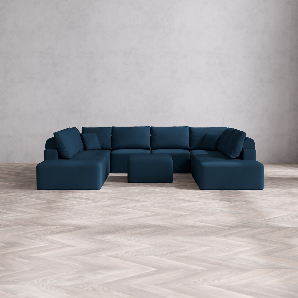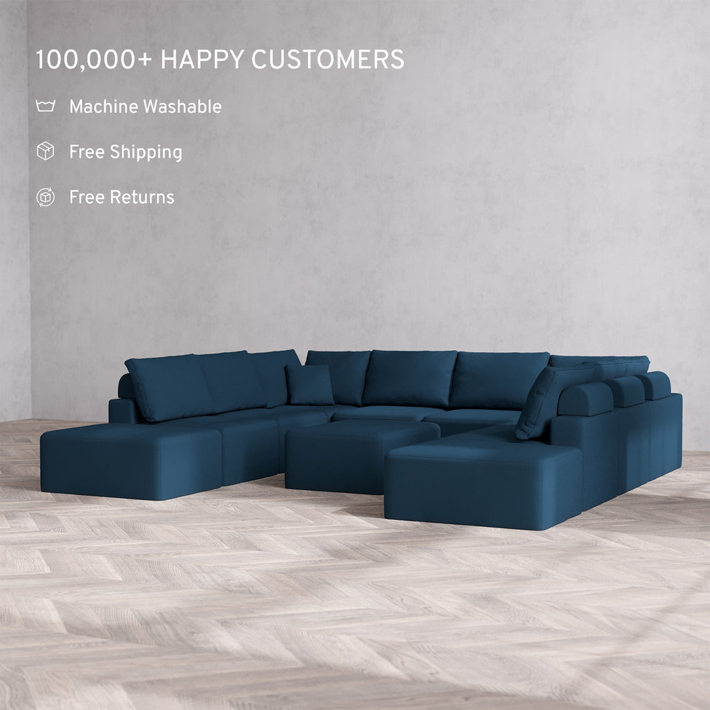 Slipcover Only - Modular Washable 10-Seater Open-Ends U Sectional + Chaise Ottoman Cloud + Bolster Sofa in Lazuli