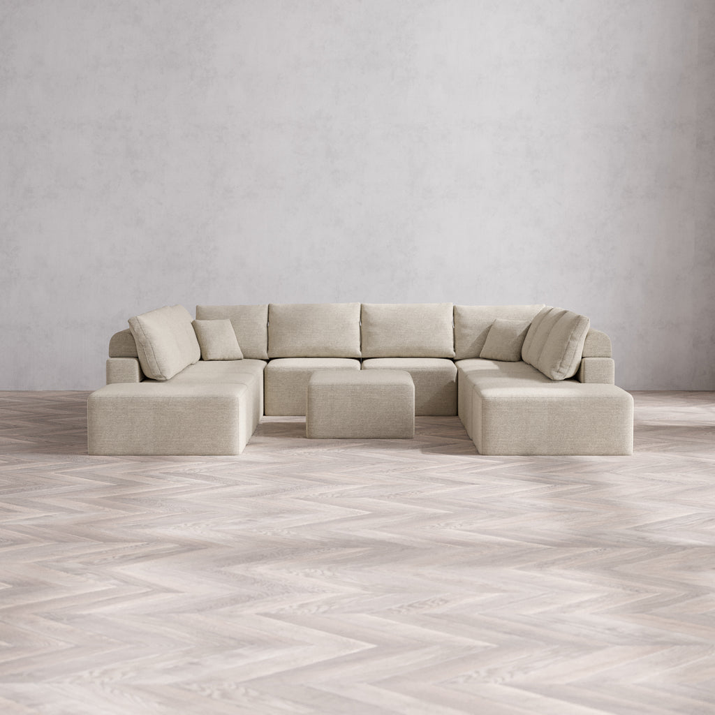 Slipcover Only - Modular Washable 10-Seater Open-Ends U Sectional + Chaise Ottoman Cloud + Bolster Sofa in Sandstone