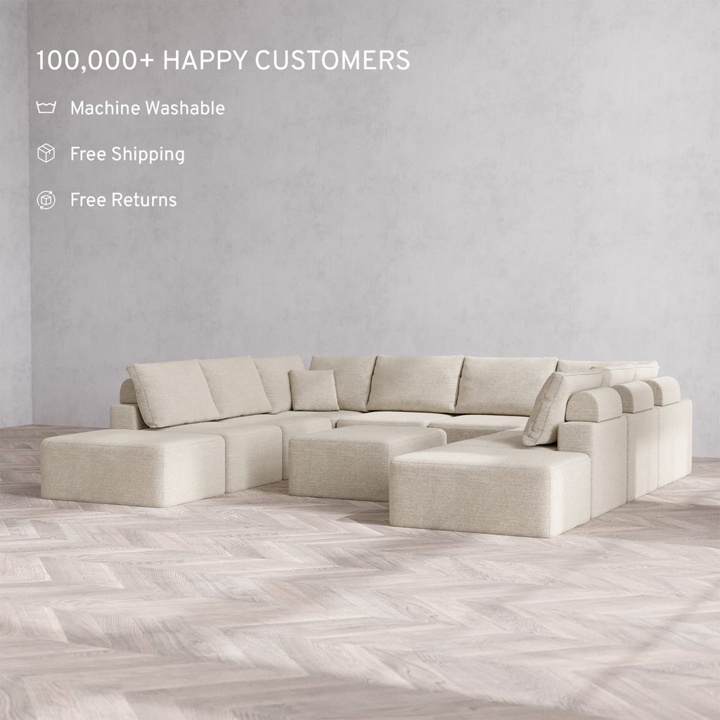 Machine Washable: Every piece of fabric—including the internal quilted duvet—is fully removable and machine washable. It’s the only Cloud-style sofa you can truly deep clean, effortlessly.
