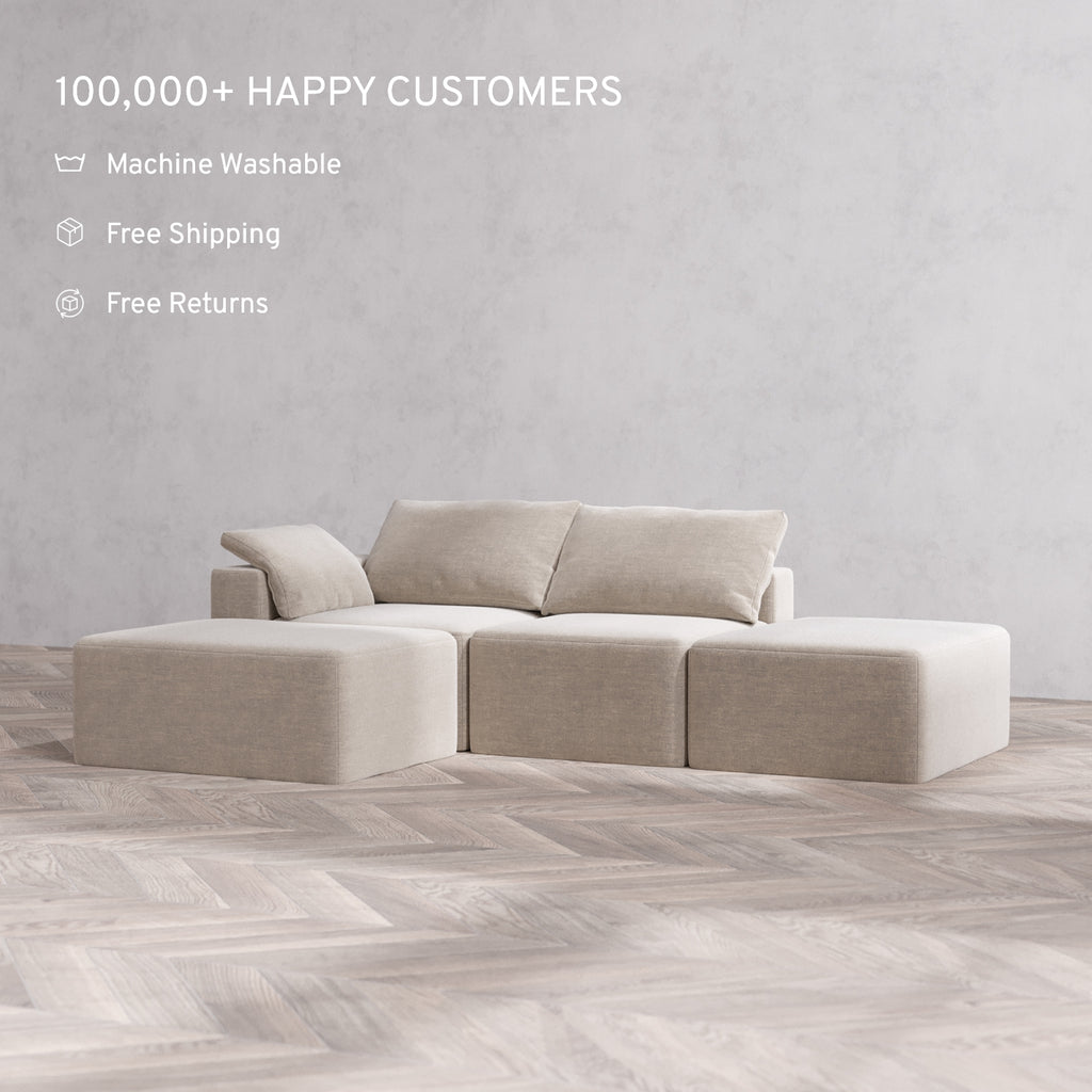 Machine Washable: Every piece of fabric—including the internal quilted duvet—is fully removable and machine washable. It’s the only Cloud-style sofa you can truly deep clean, effortlessly.