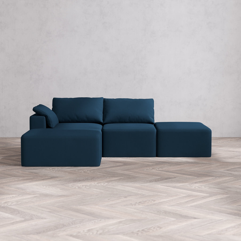 Slipcover Only - Modular Washable 2-Seater Open End Chaise Sectional Cloud Sofa in Lazuli | Left-Facing Arm