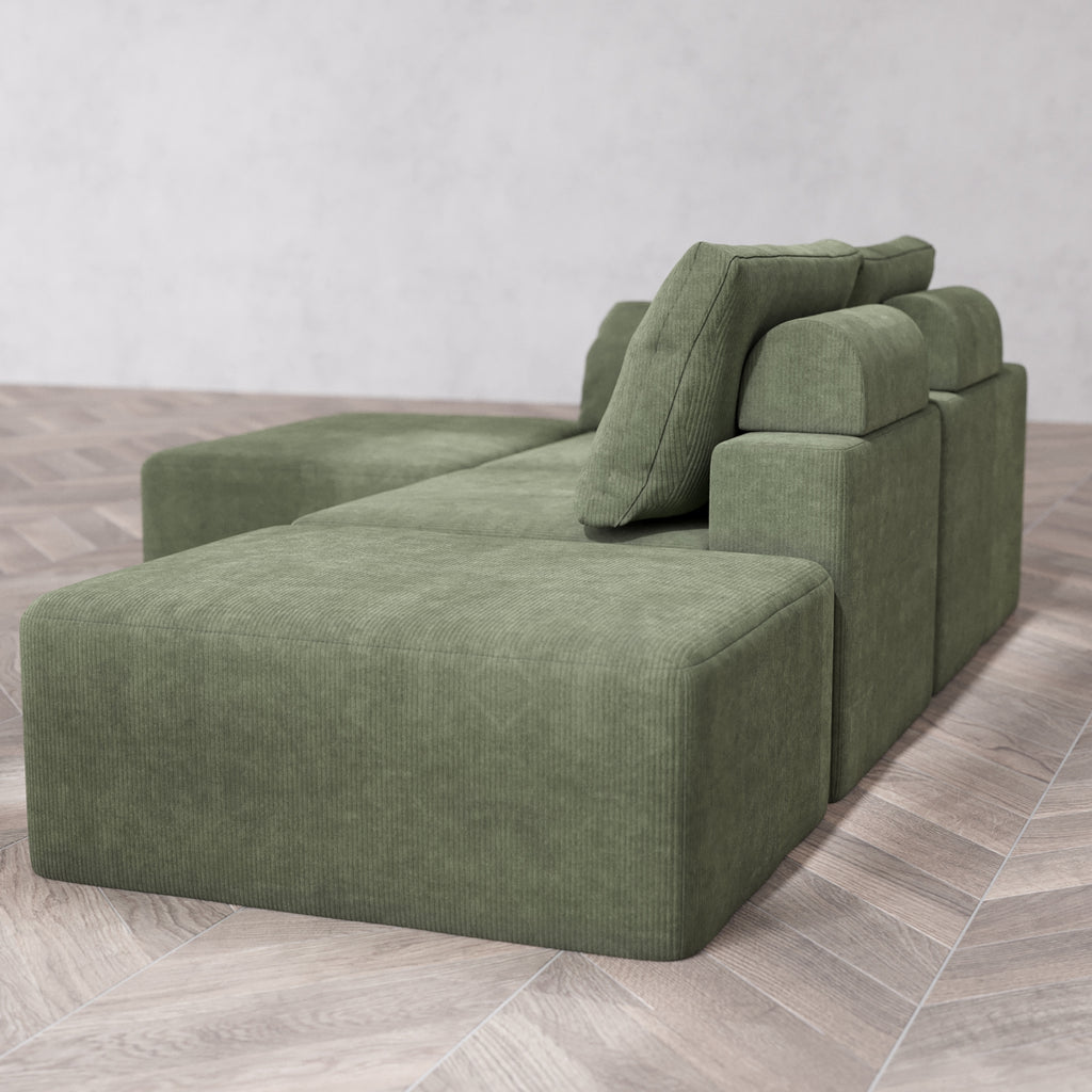 Slipcover Only - Modular Washable 2-Seater Open End Chaise Sectional Cloud + Bolster Sofa in Juniper | Left-Facing Arm